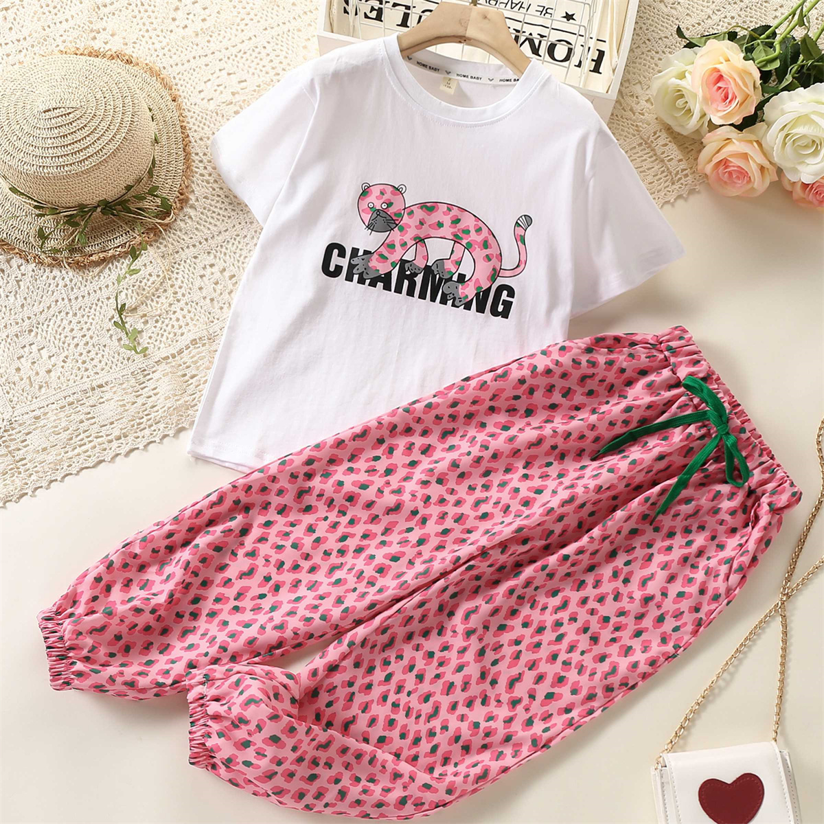 Kids Girls Summer Leopard Pattern T-shirt & Pants Wholesale