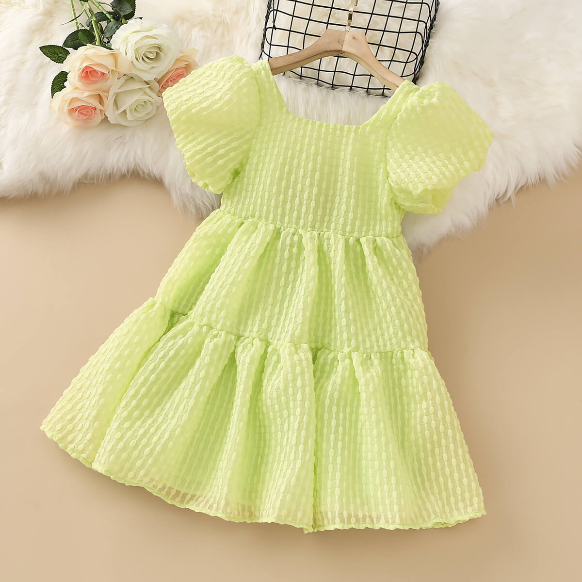 Kids Girls Summer Net color Puff Sleeve Princess Dress Wholesale