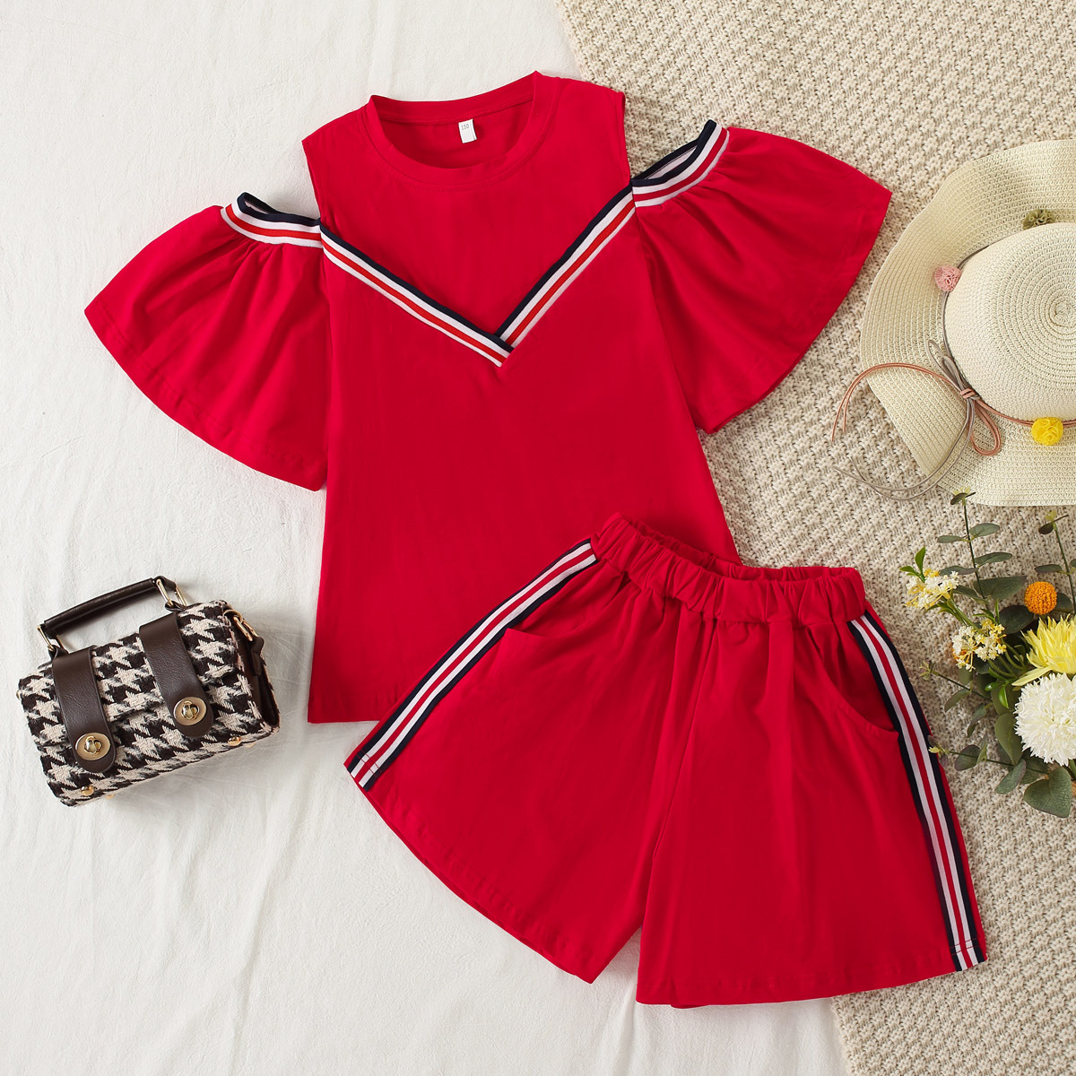 Kids Girls Summer Party Vacation Daily Stripes Suspender Strapless Suit Wholesale
