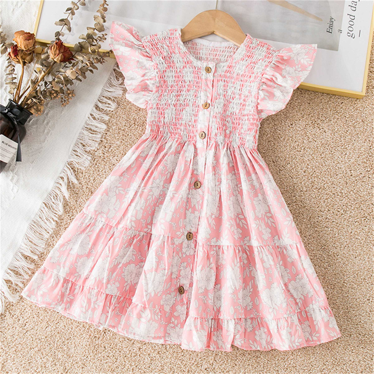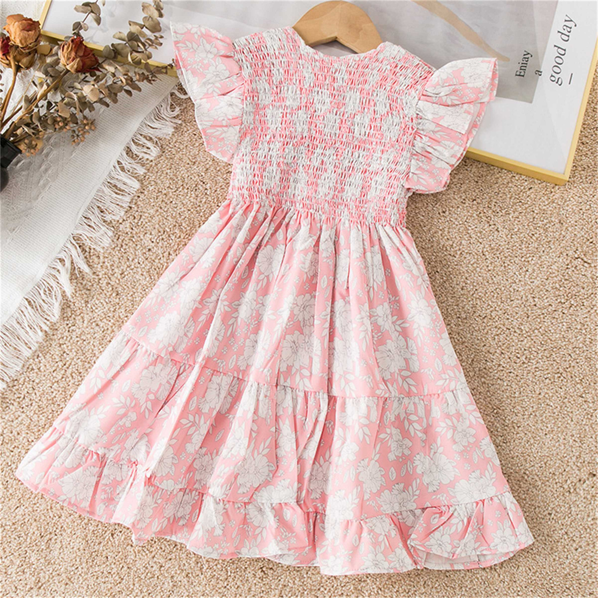 Kids Girls Summer Sweet Flying Sleeve Floral Dress Wholesale