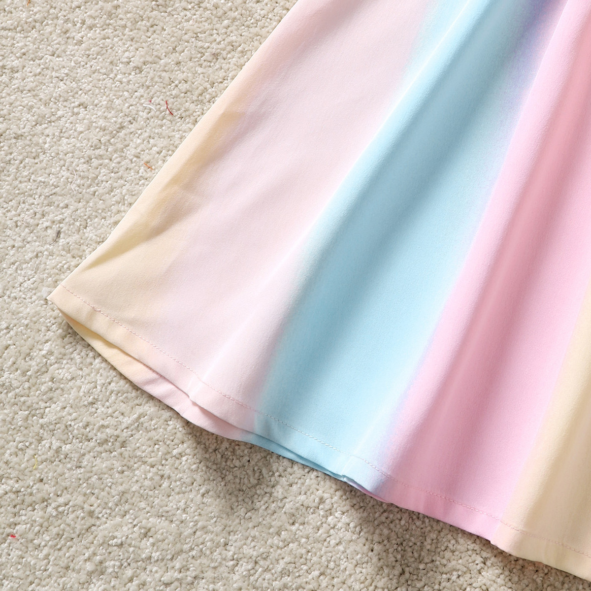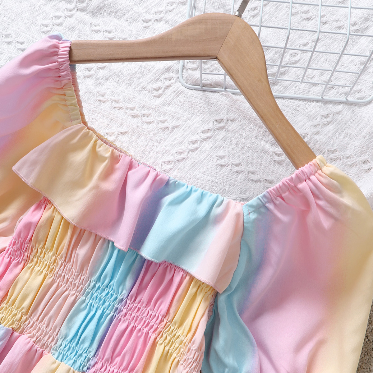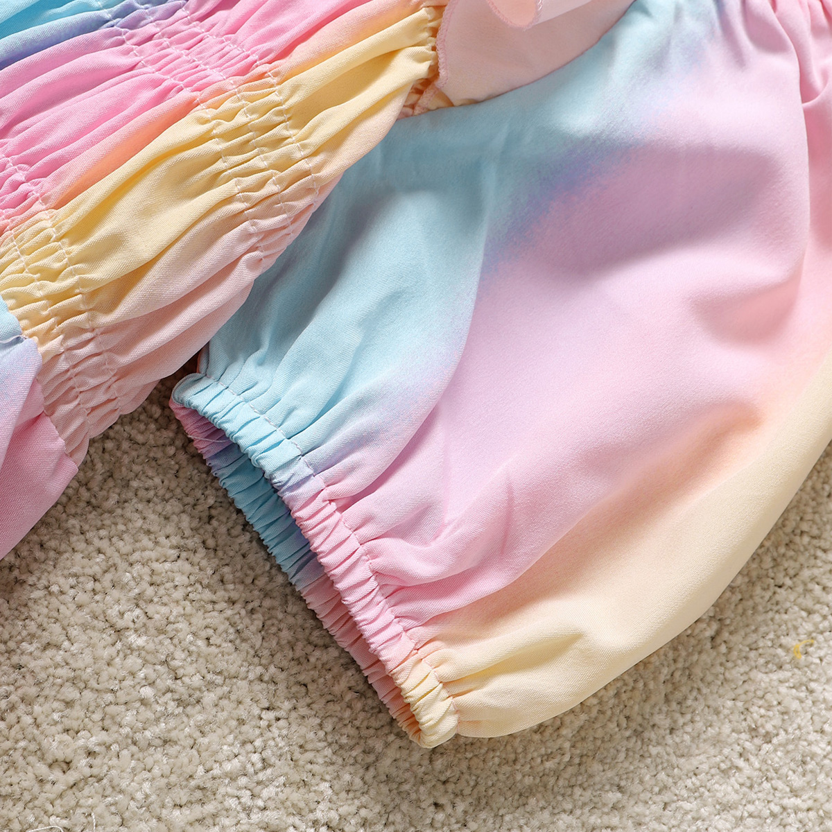 Kids Girls Summer Sweet Rainbow Puff Sleeves A-line skirt Dress Wholesale