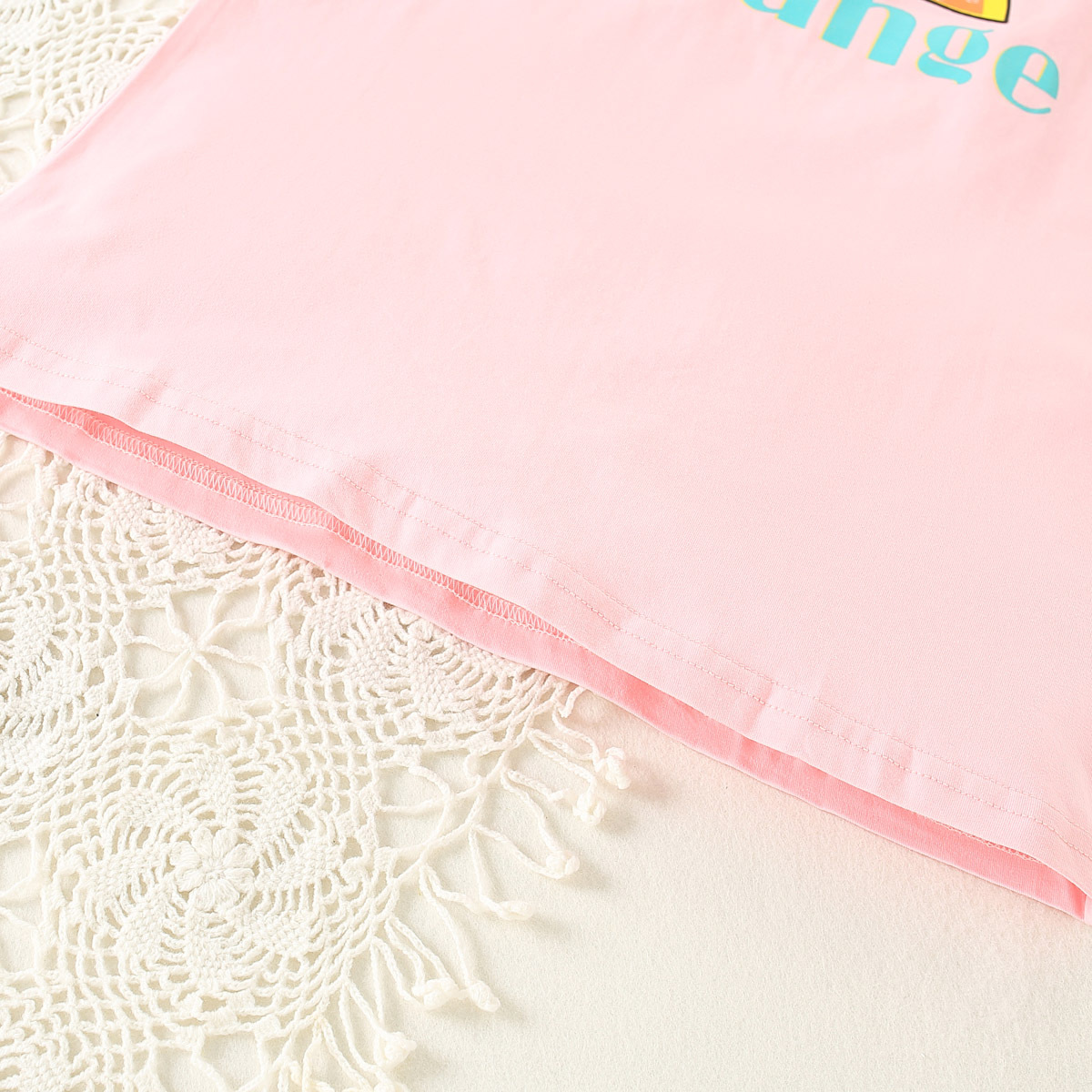 Kids Girls Summer Vacation Daily Letter Orange Print Suit Skirt Wholesale