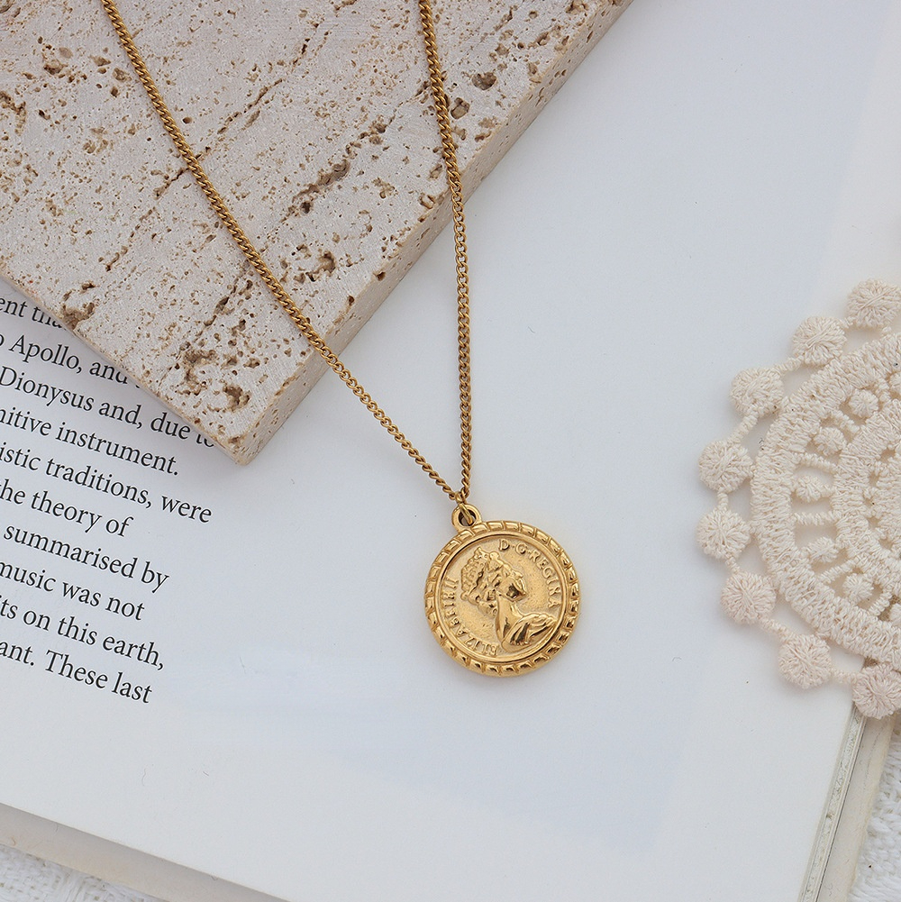 Gold Queen Plate Pendant Necklace
