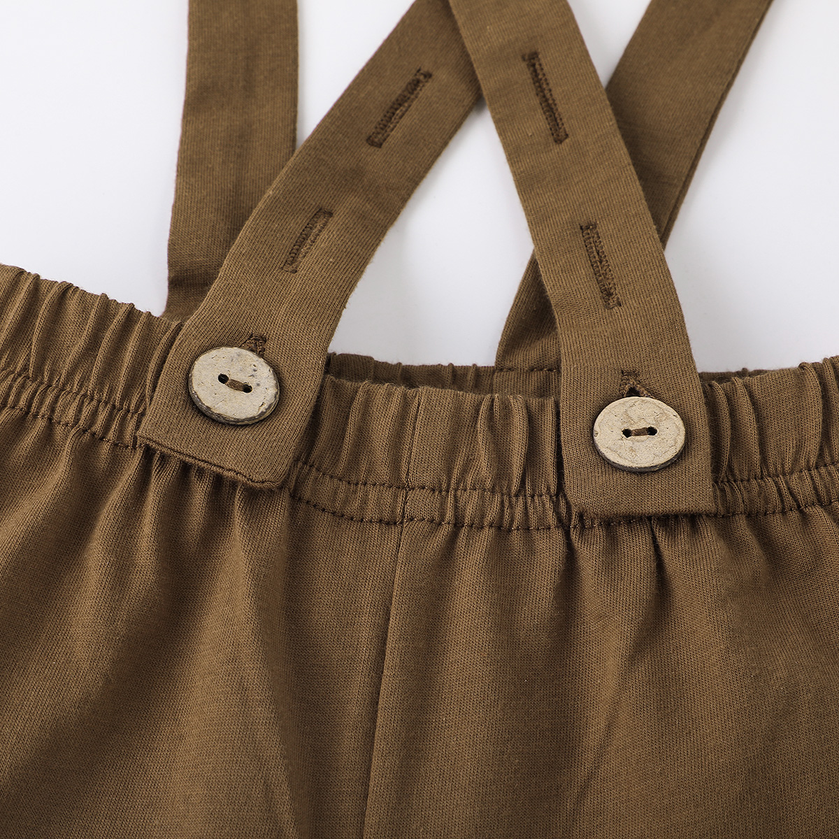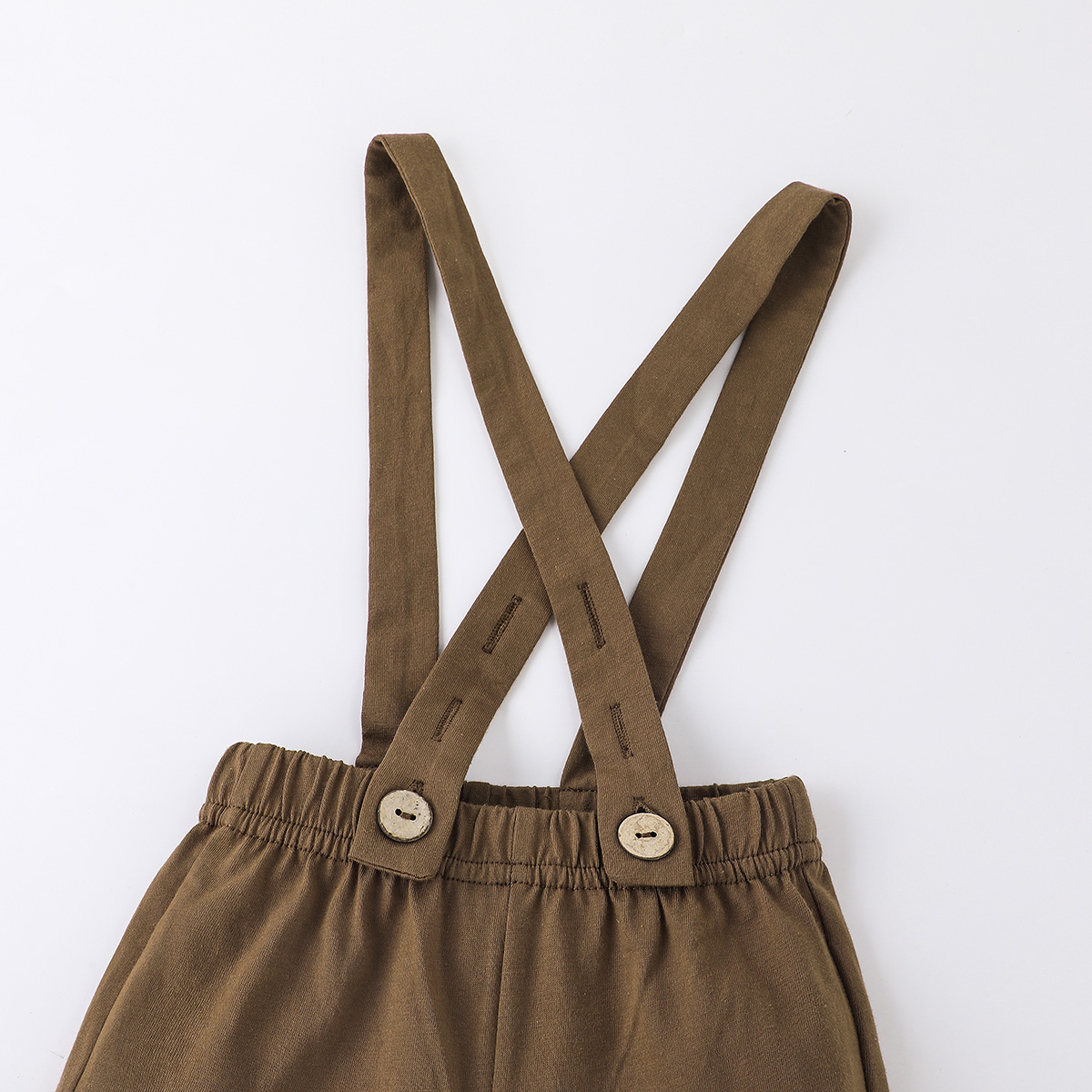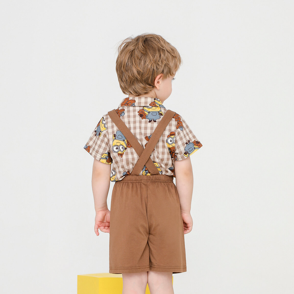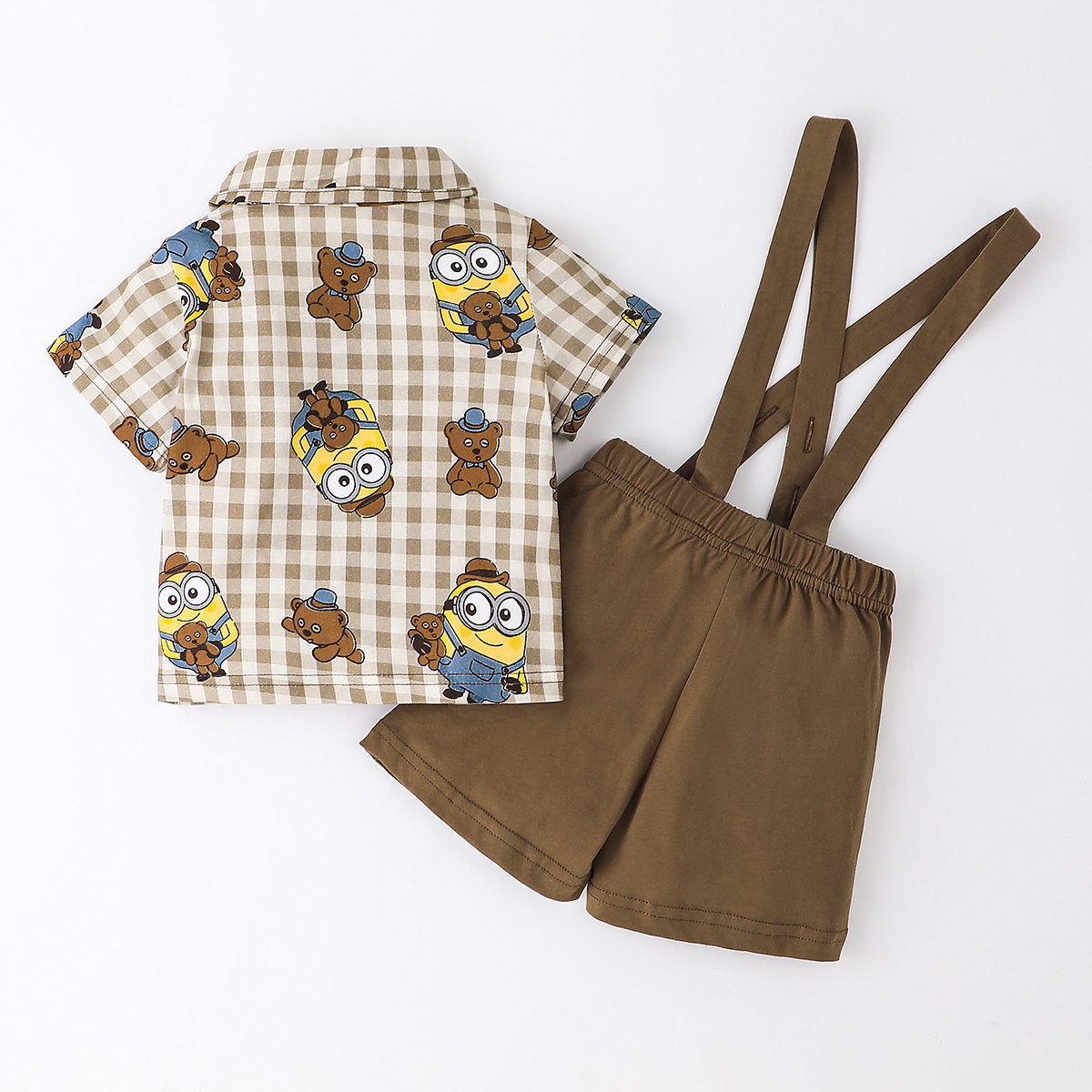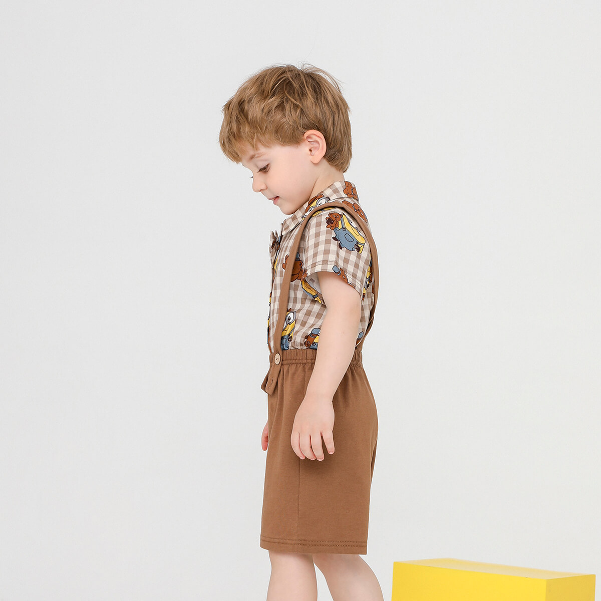 Toddler Boy Printed Brown Checked Bib Pants Set Wholesale
