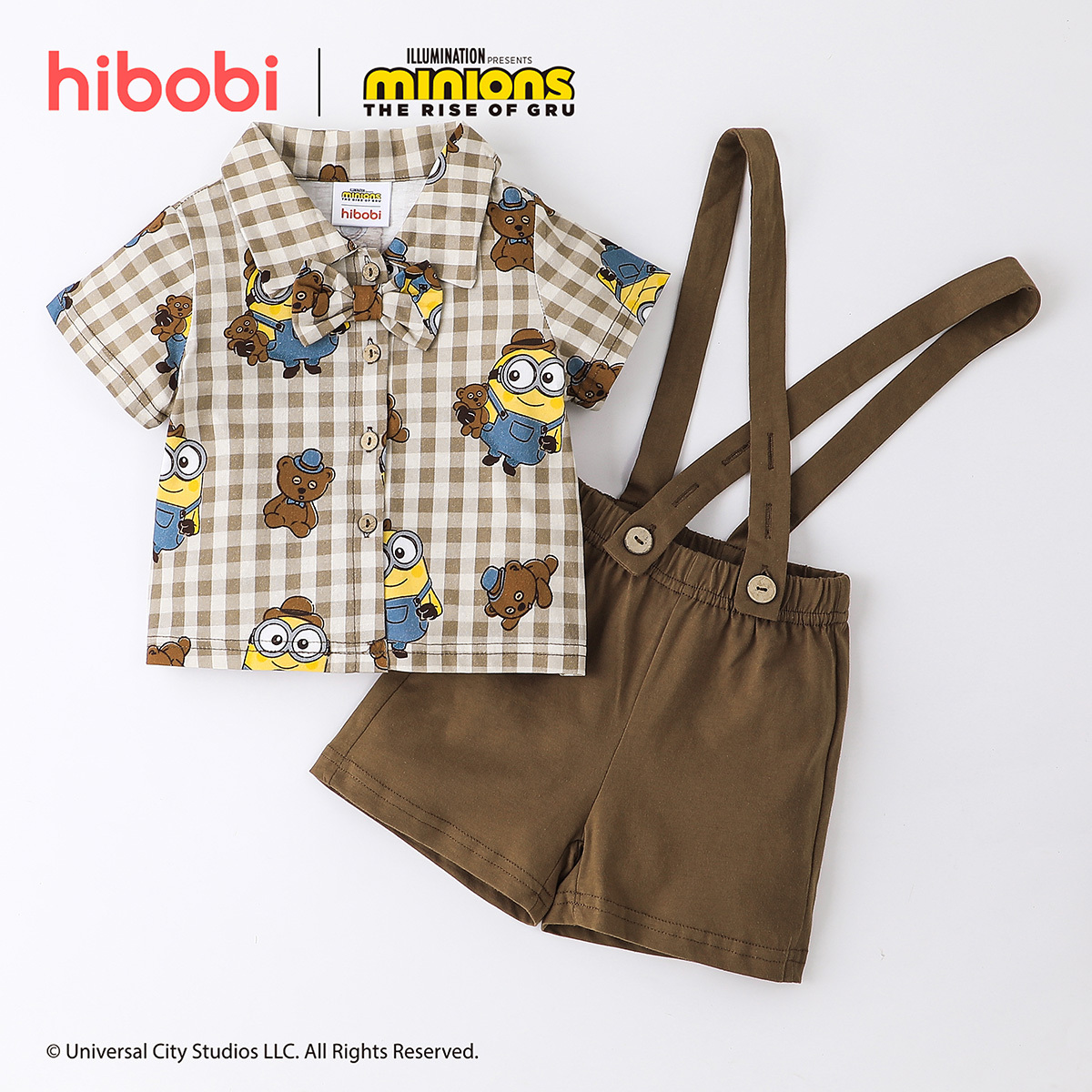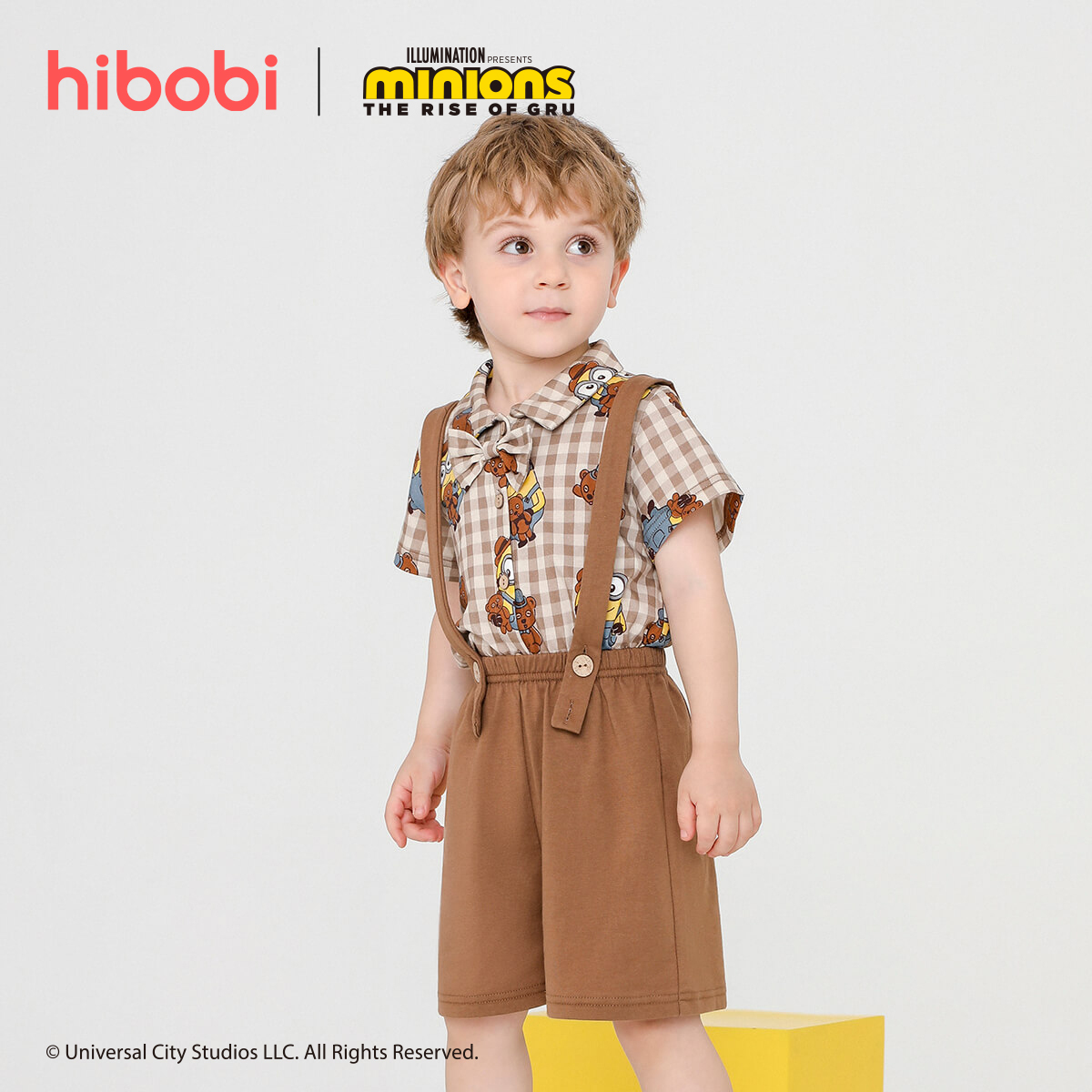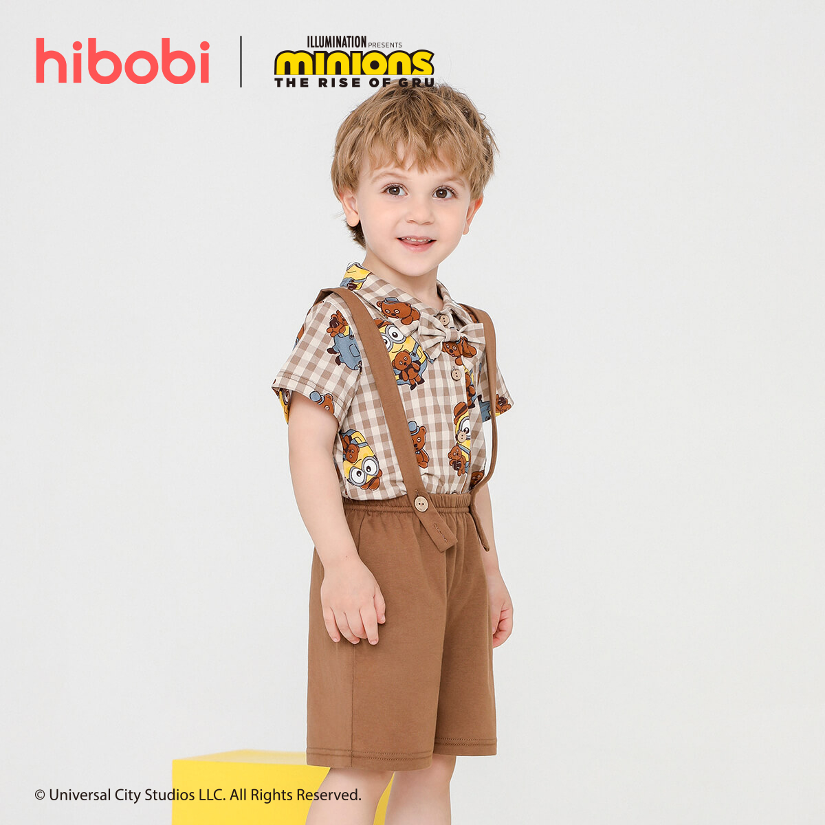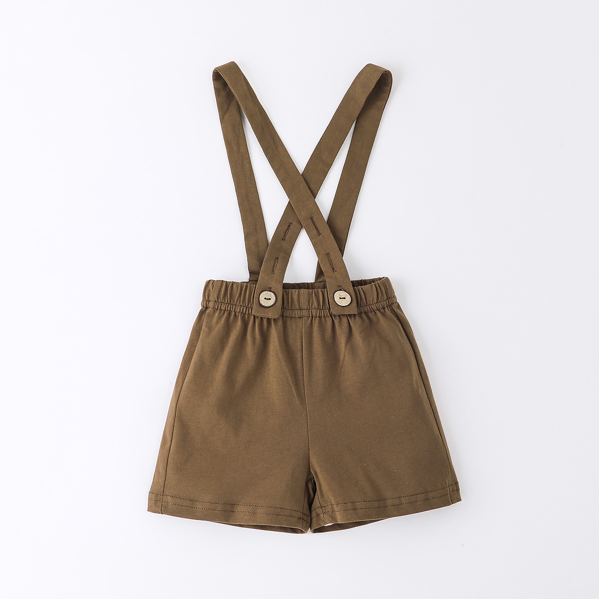 Toddler Boy Printed Brown Checked Bib Pants Set Wholesale