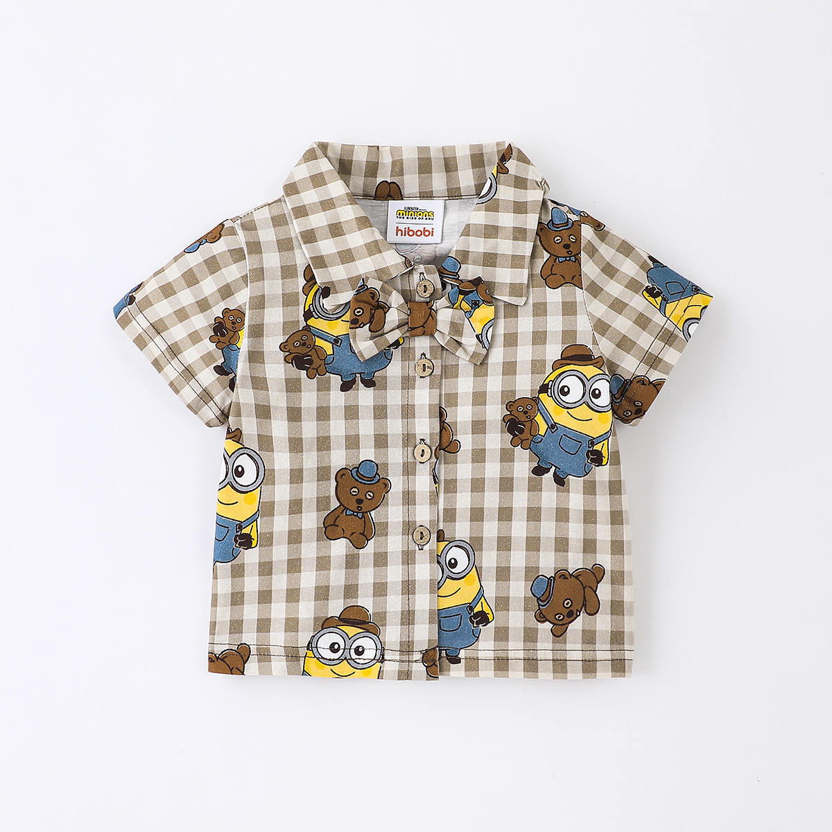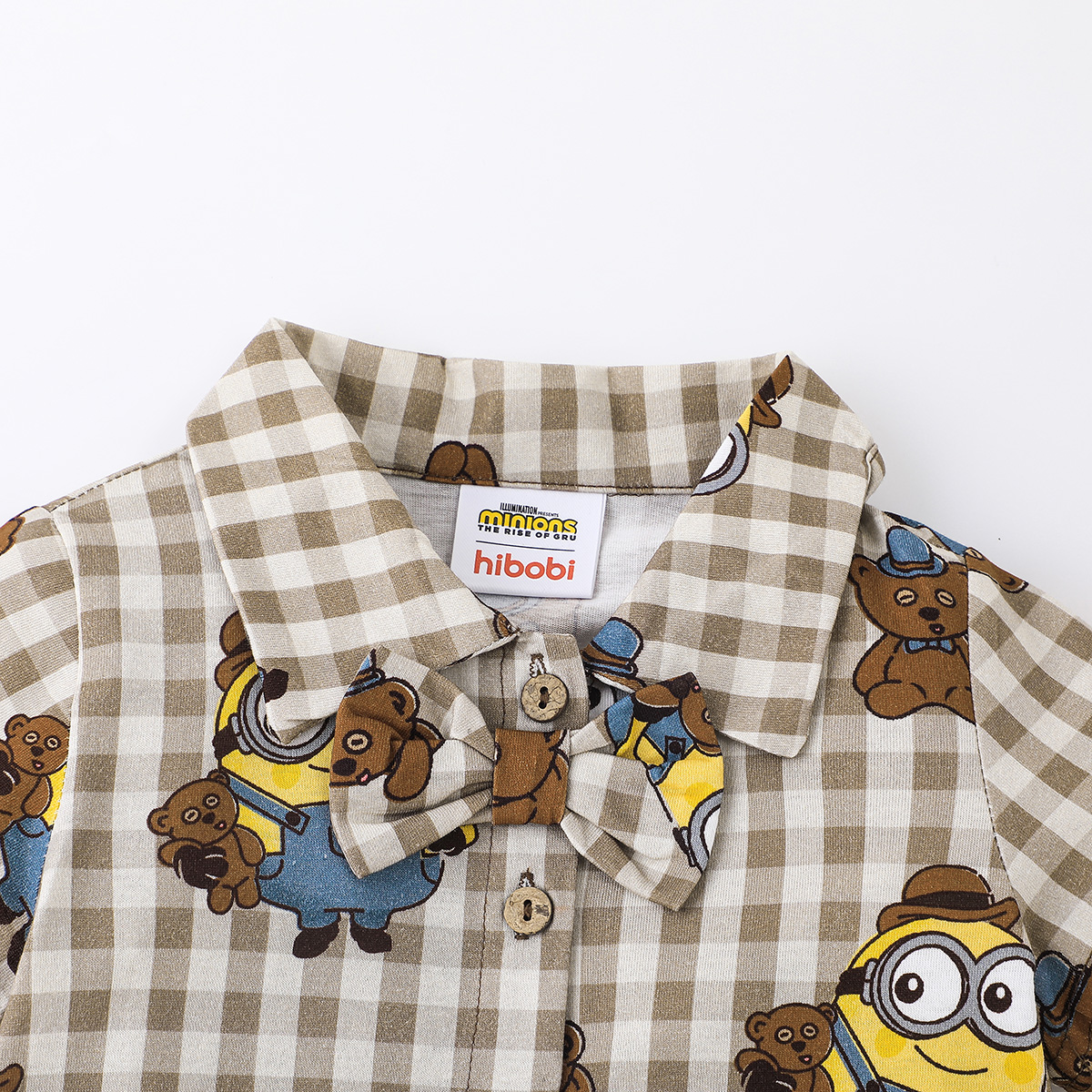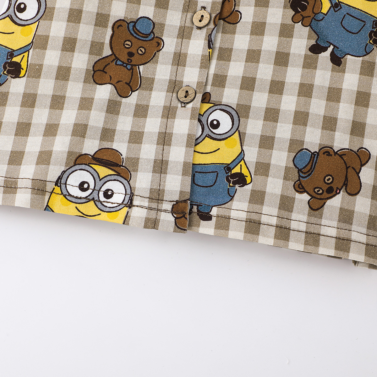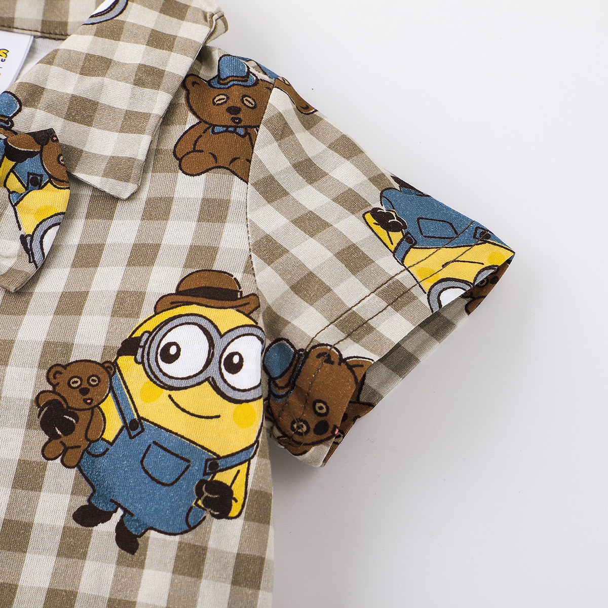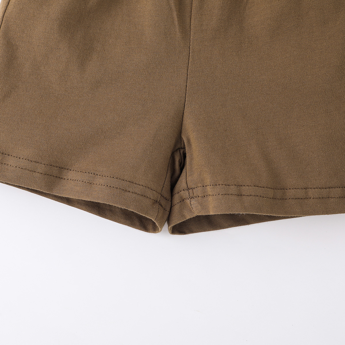 Toddler Boy Printed Brown Checked Bib Pants Set Wholesale