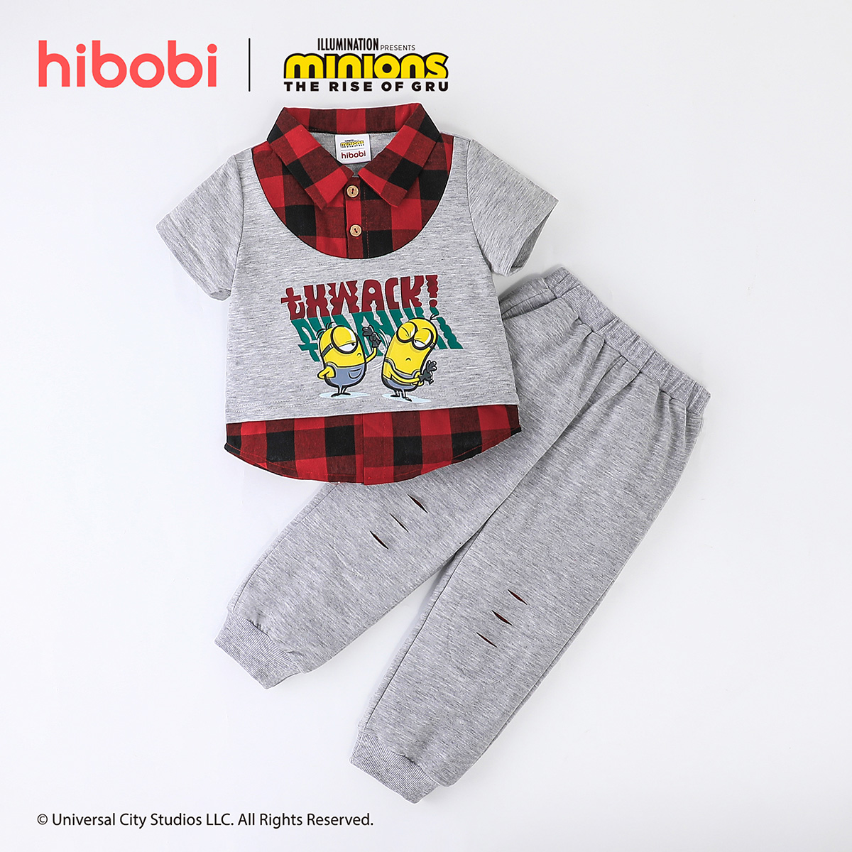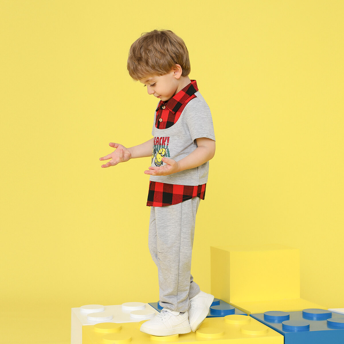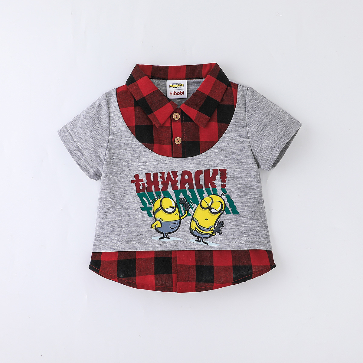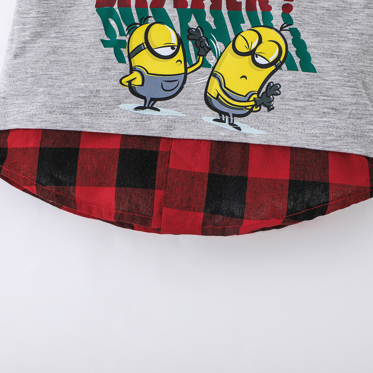 Minions ×toddler boy Printed Fake Two Piece Short Sleeve Grey Trousers Set Wholesale