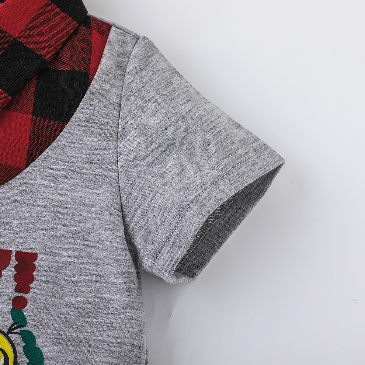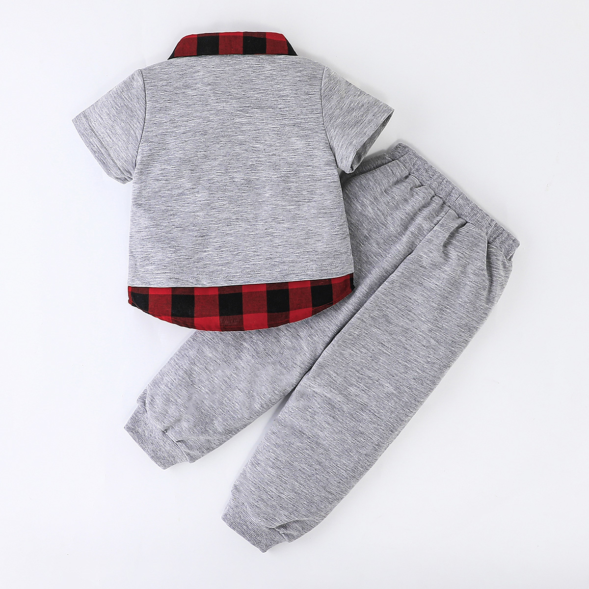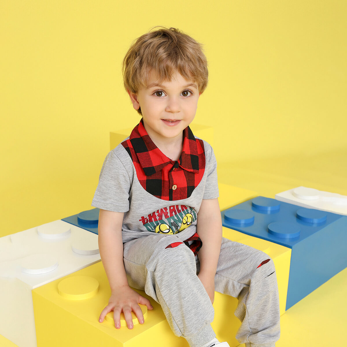 Minions ×toddler boy Printed Fake Two Piece Short Sleeve Grey Trousers Set Wholesale