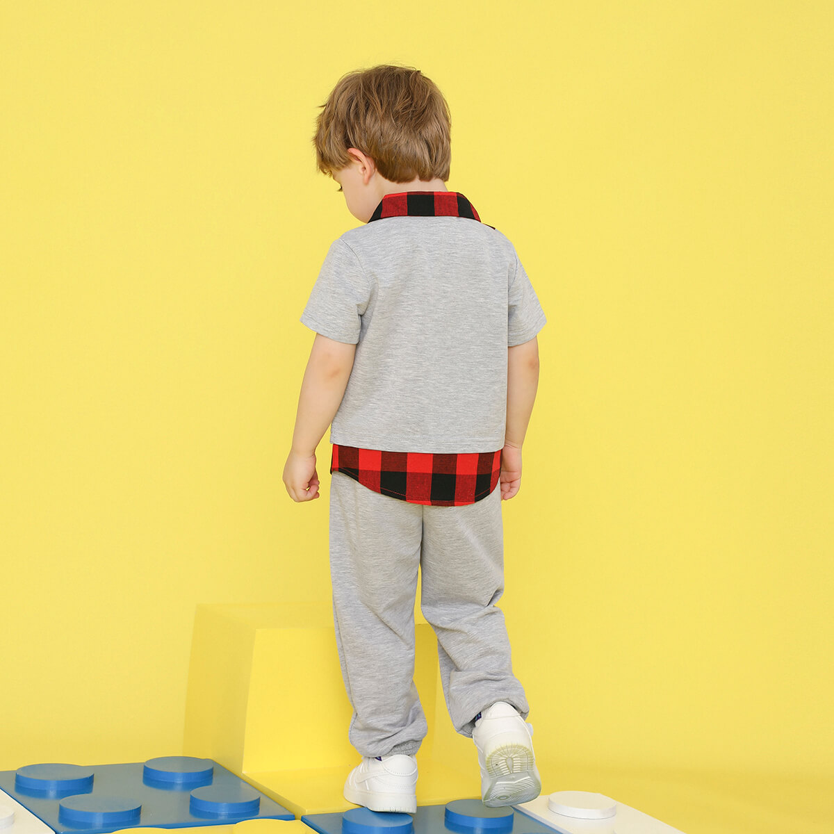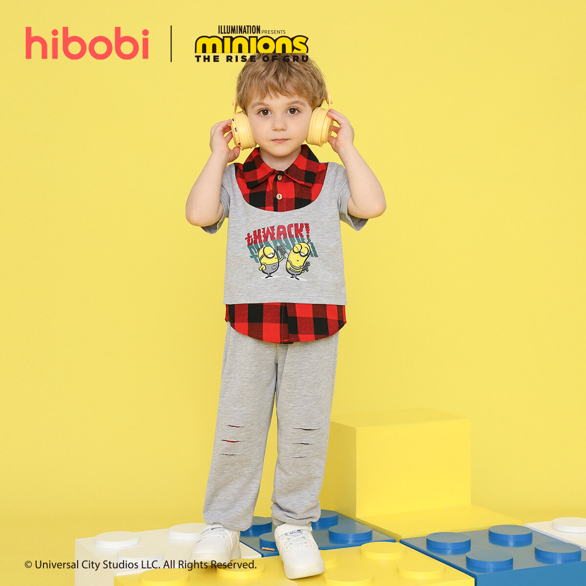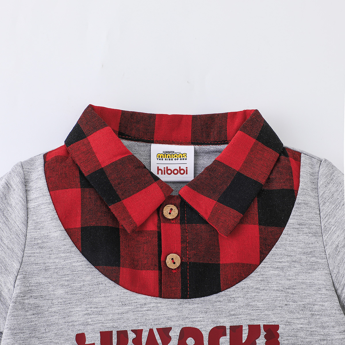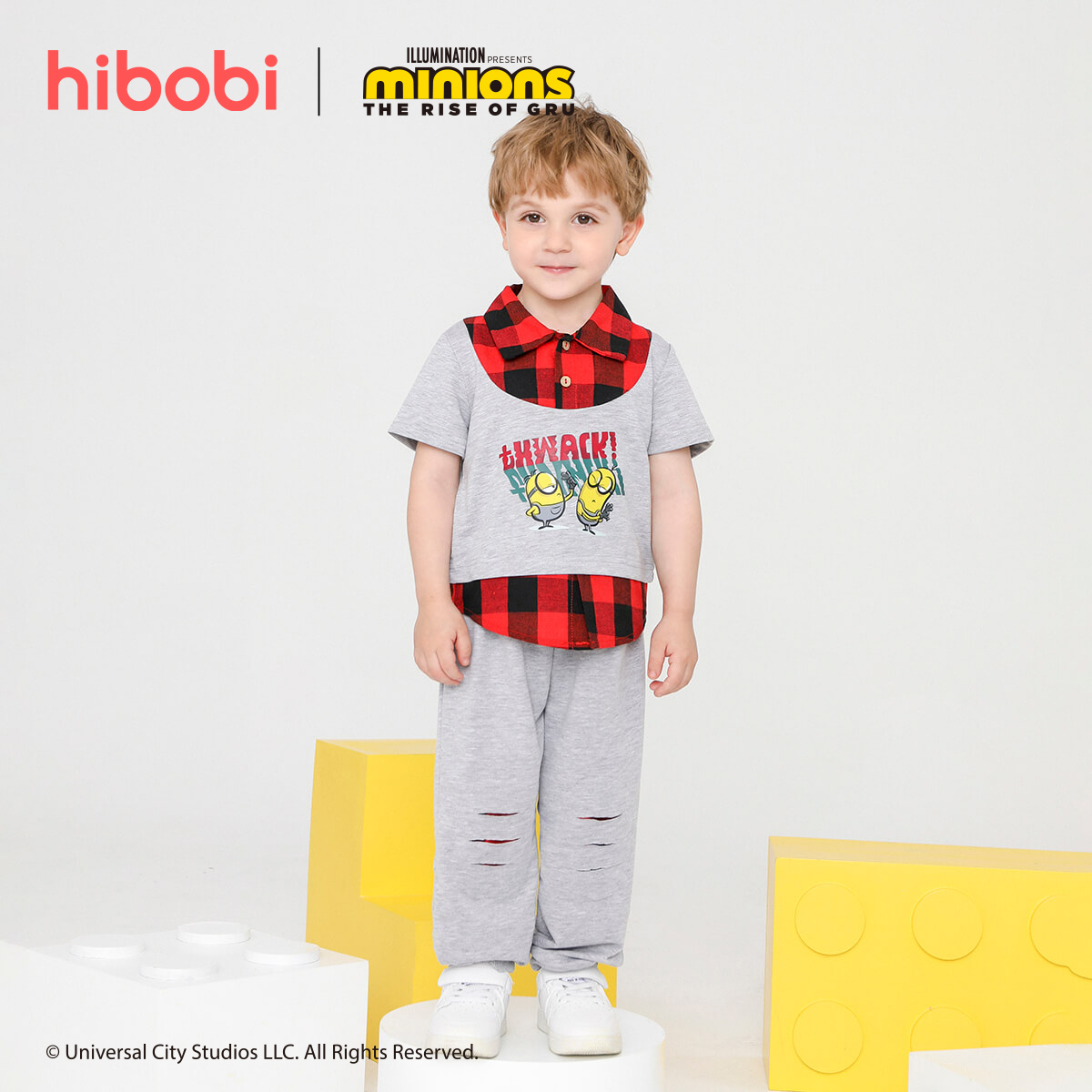 Minions ×toddler boy Printed Fake Two Piece Short Sleeve Grey Trousers Set Wholesale