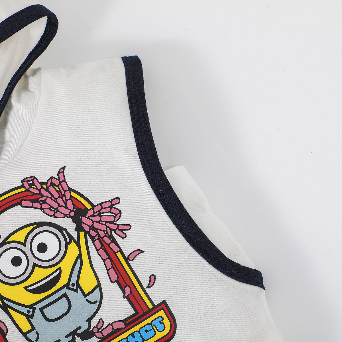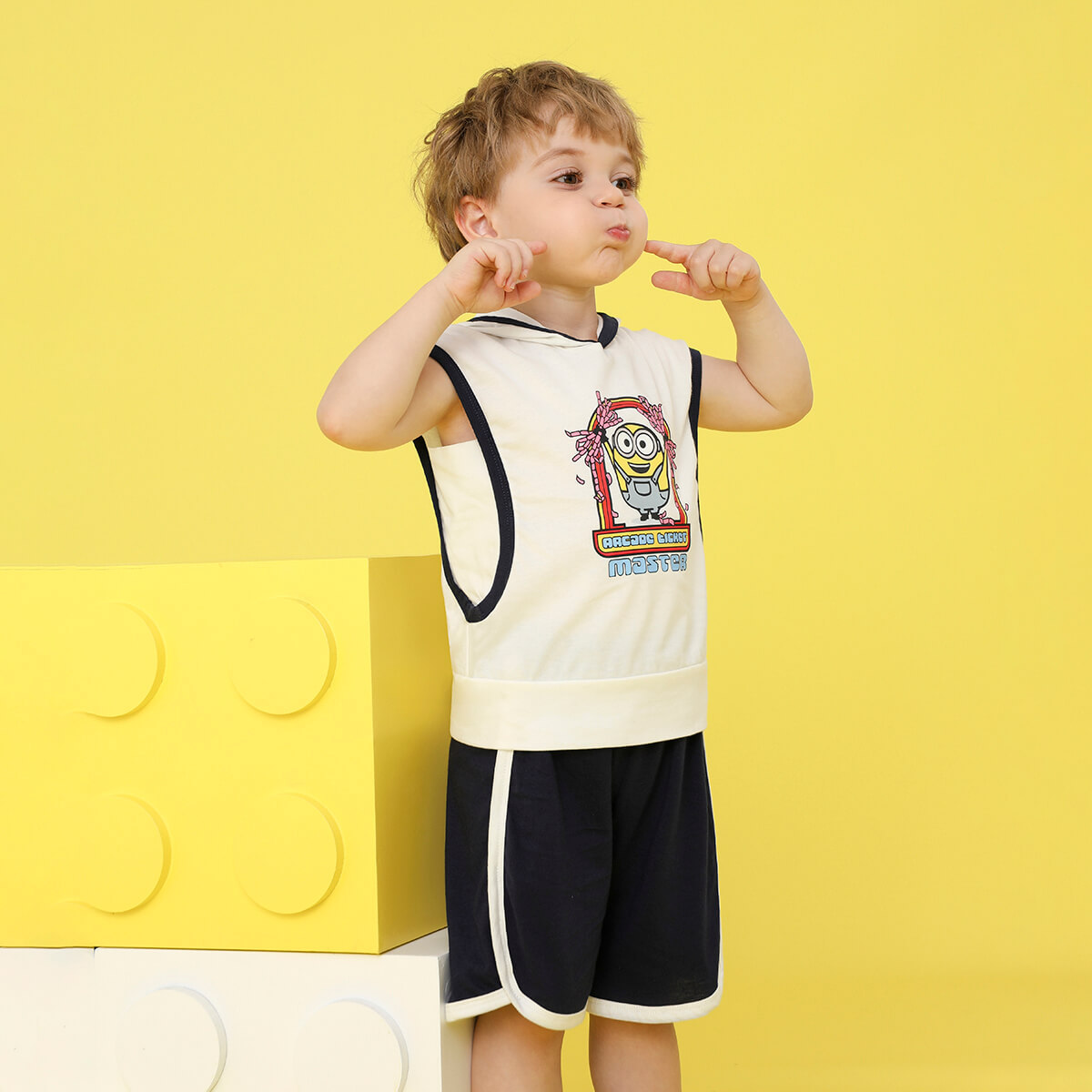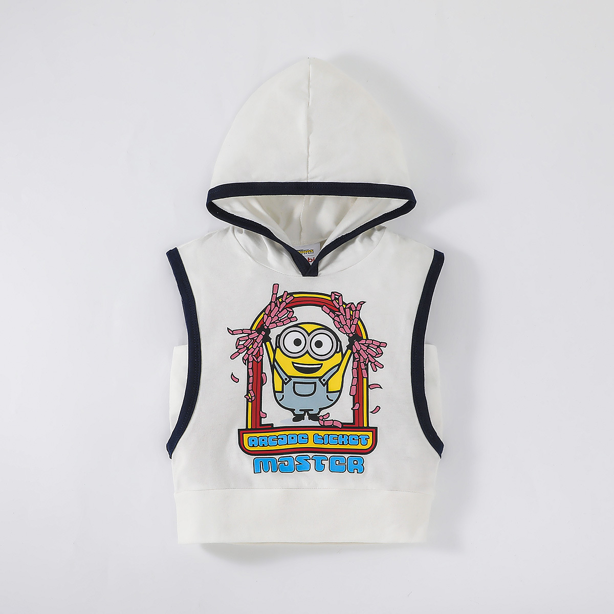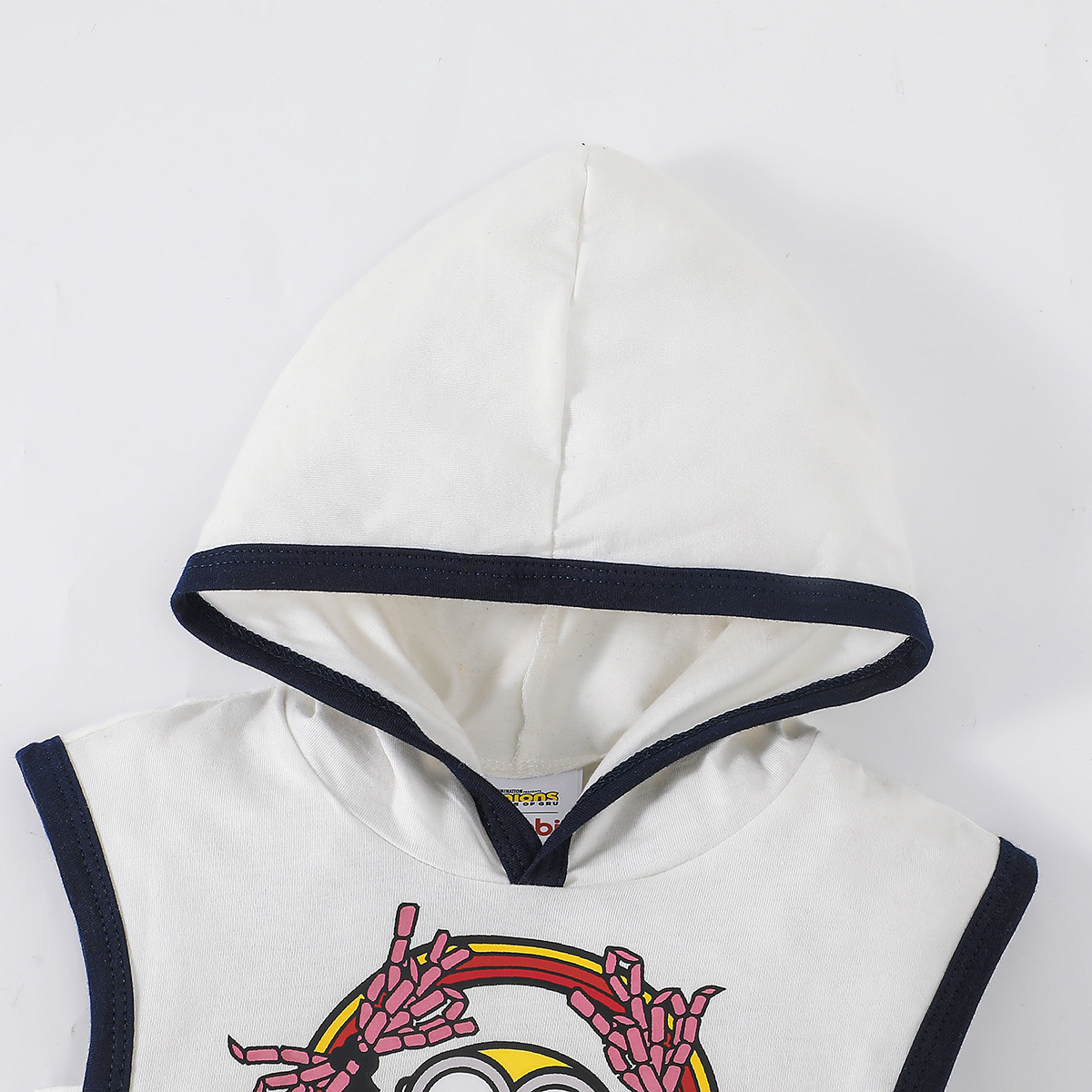 Minions × toddler boy Printed White Patchwork Hooded Sleeveless Suit Wholesale