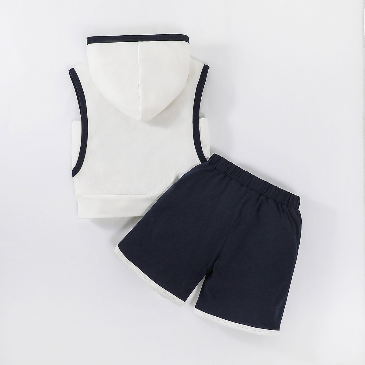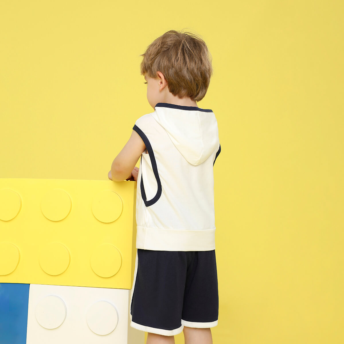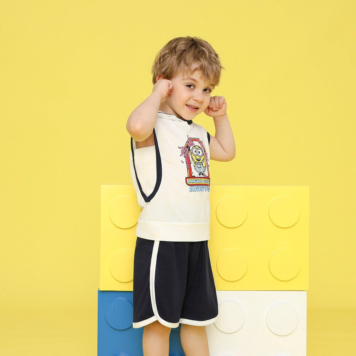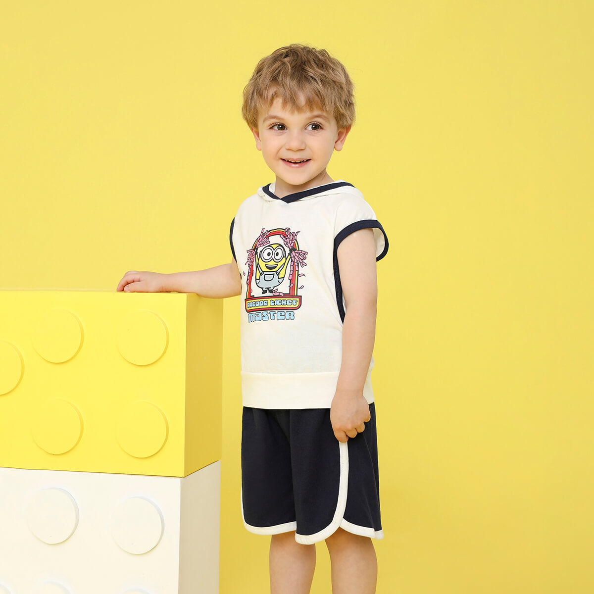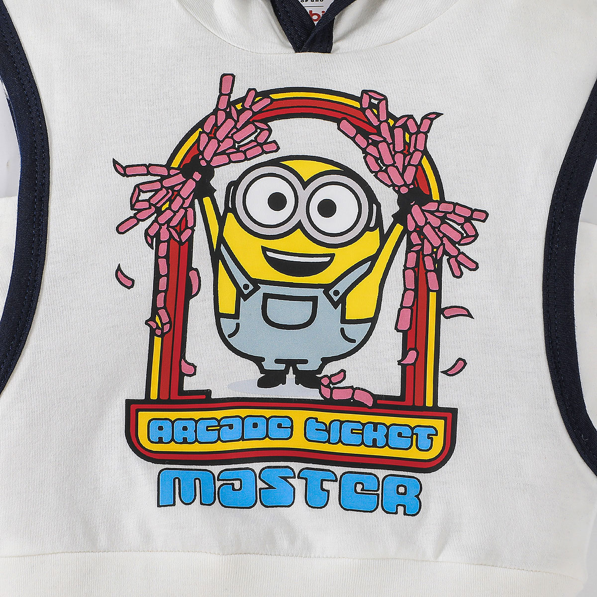 Minions × toddler boy Printed White Patchwork Hooded Sleeveless Suit Wholesale