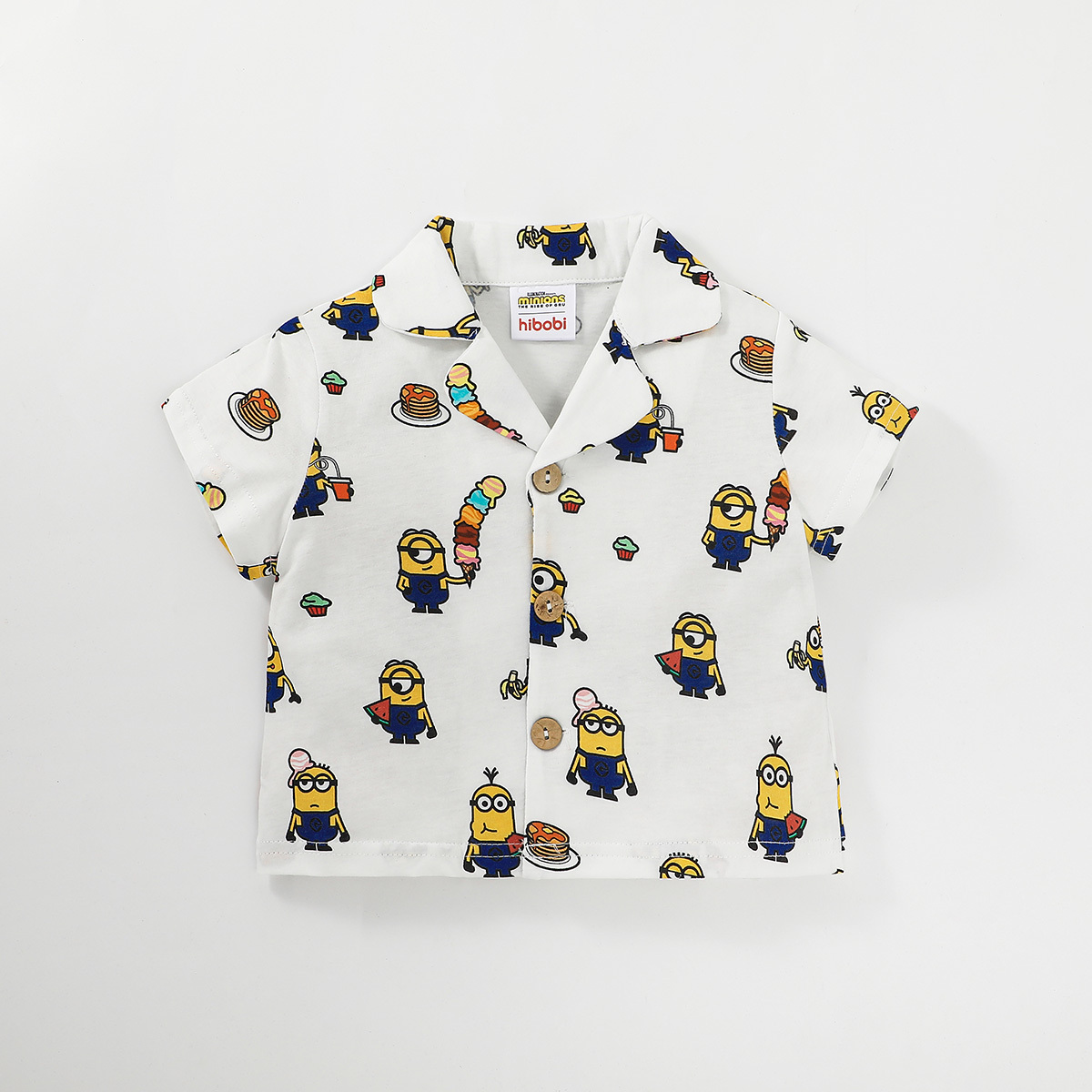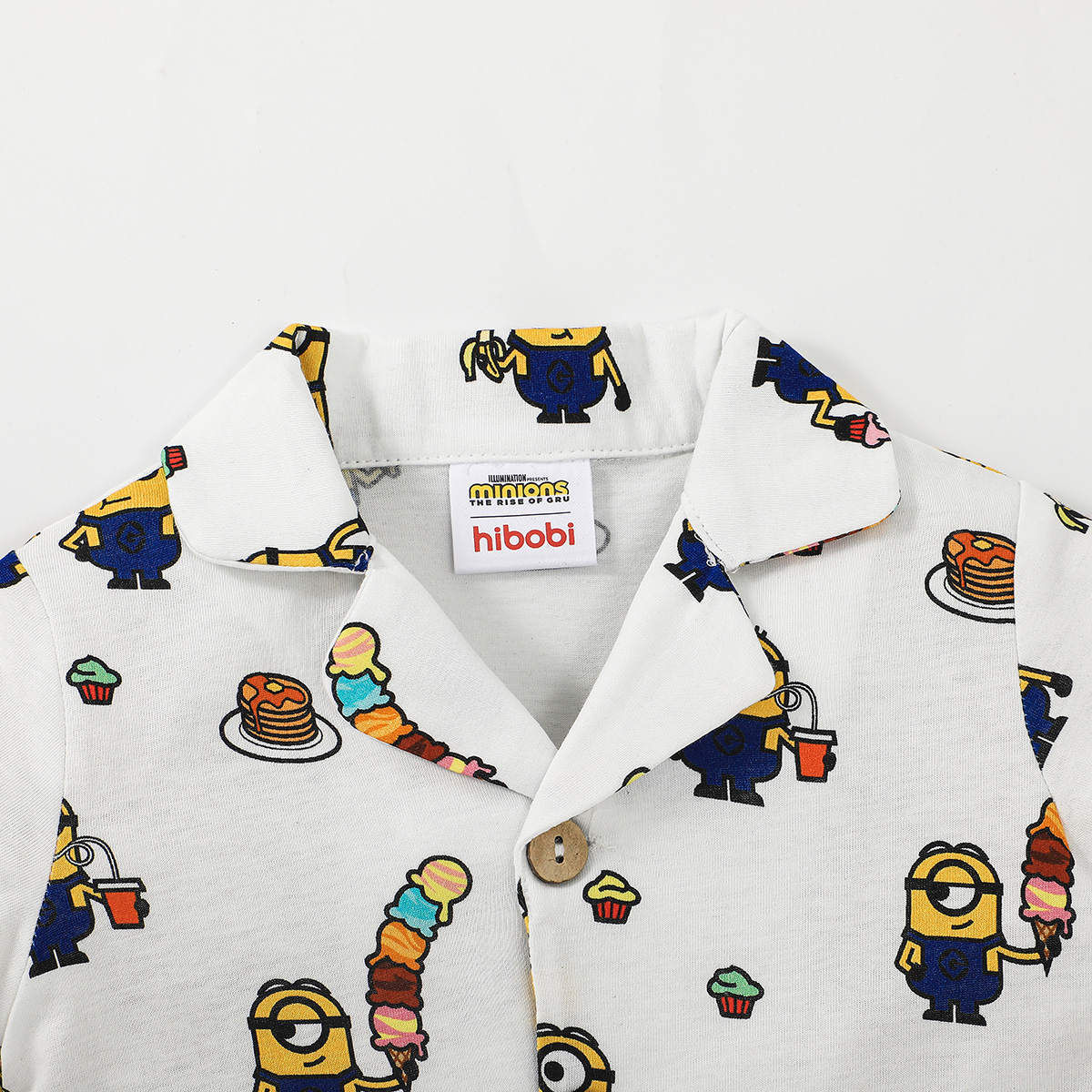 Minions × Toddler Boy Printed White V-neck shirt Suit Wholesale
