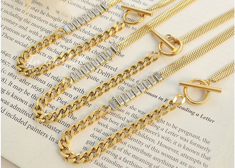 OT Buckle Splicing Diamonds & Blade Chain Necklace