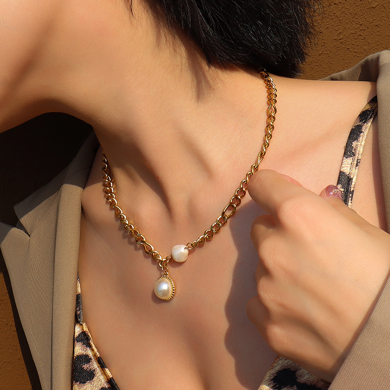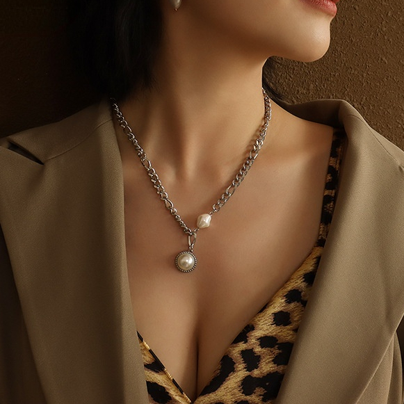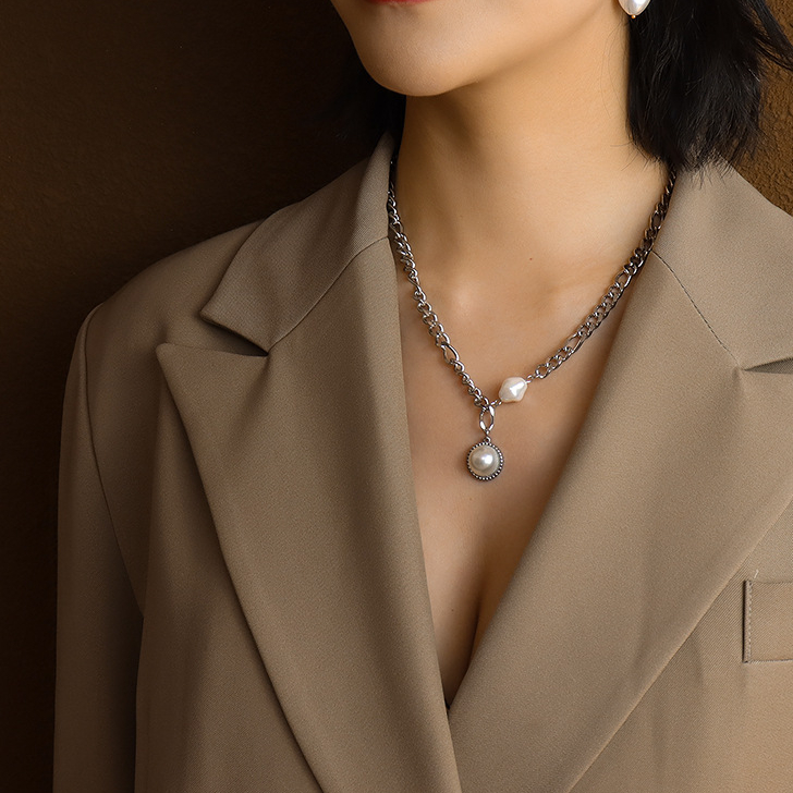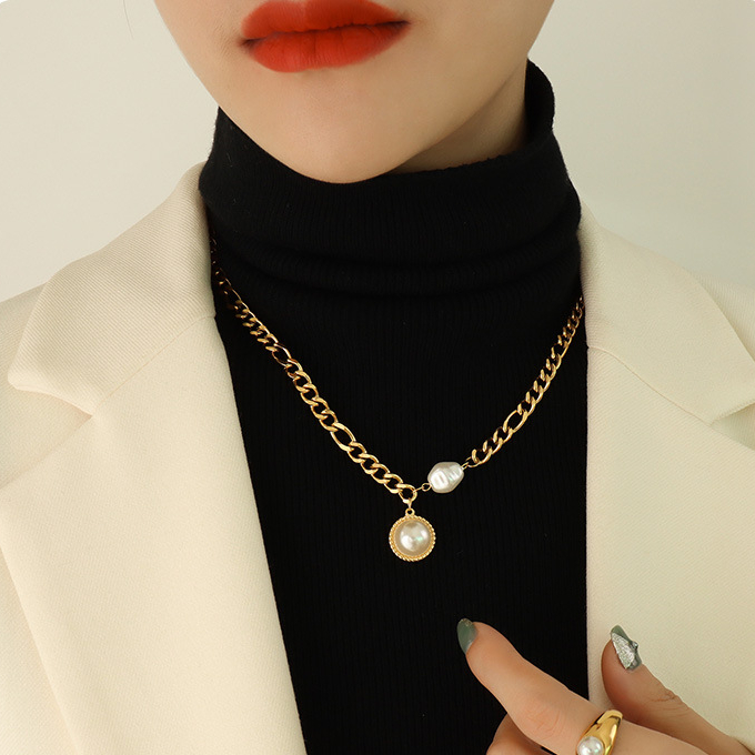 Pearl Splicing Chunky Chain Asymmetric Necklace