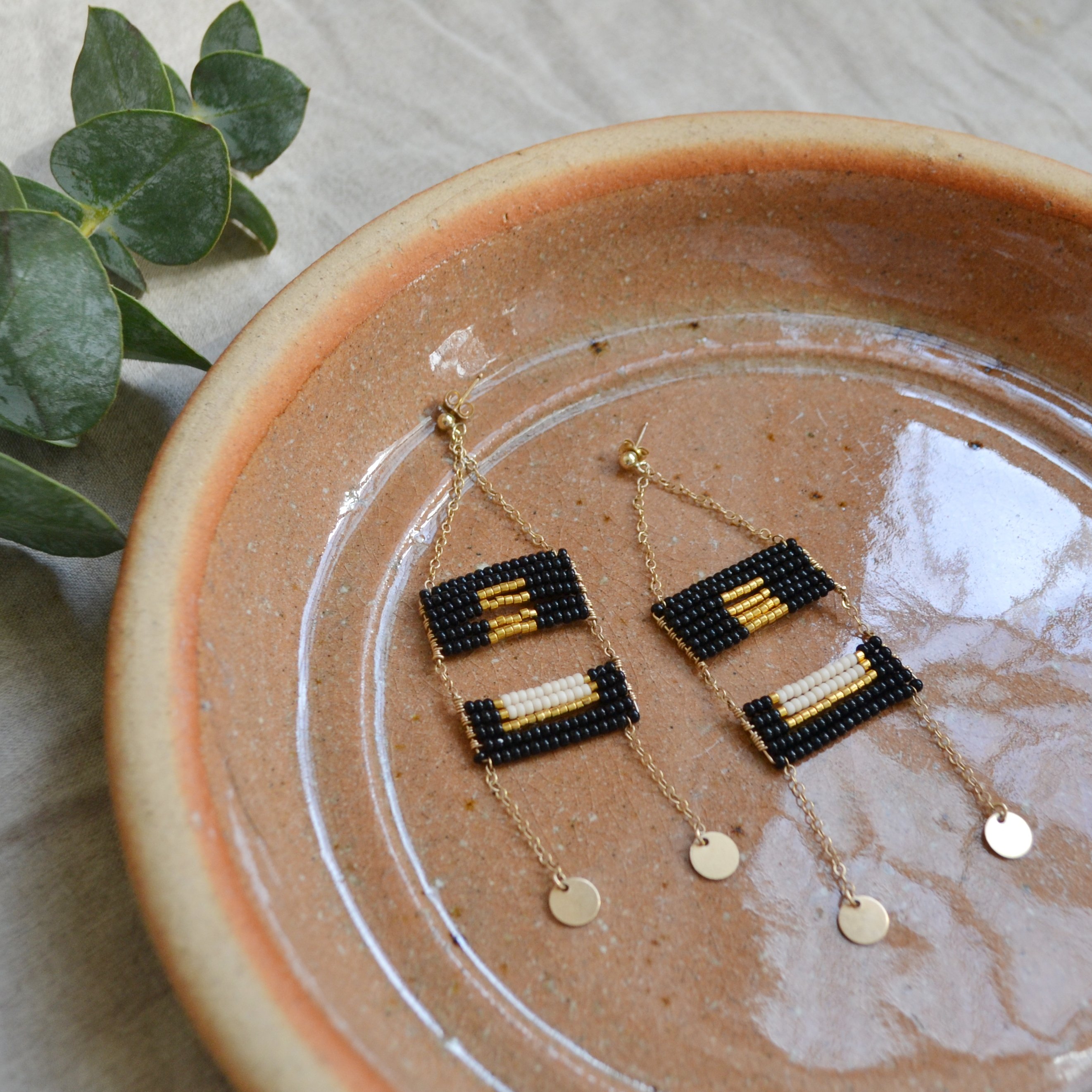 Mix traditional Tanzanian beading with a modern and unique design, and you have our Shikamo_Earrings. Handmade by women artisans in Tanzania, these earrings are the perfect combination of black- and blush-colored glass beads and swinging gold discs. Add them to a special night out or pair them with a simple outfit for instant glam.