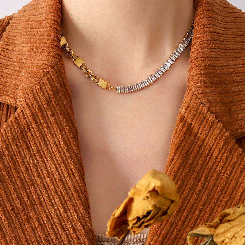 Square Shape Diamonds Splicing Asymmetric Chain Necklace & Bracelet Set