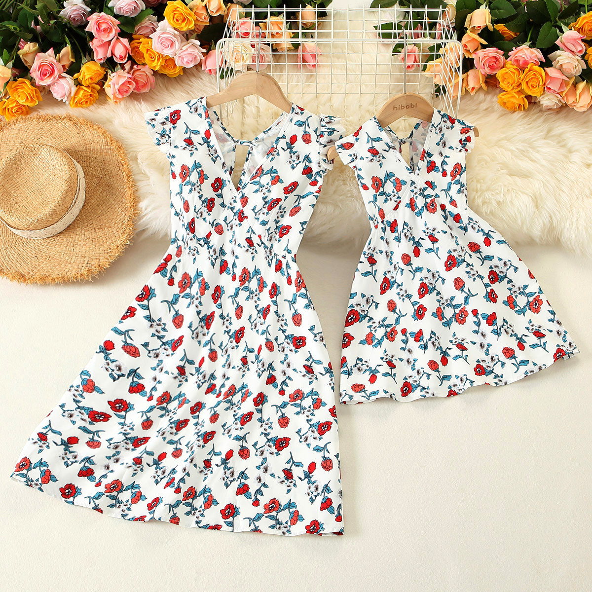 Sweet Floral Print Sleeveless Dress for Mom and Me Wholesale