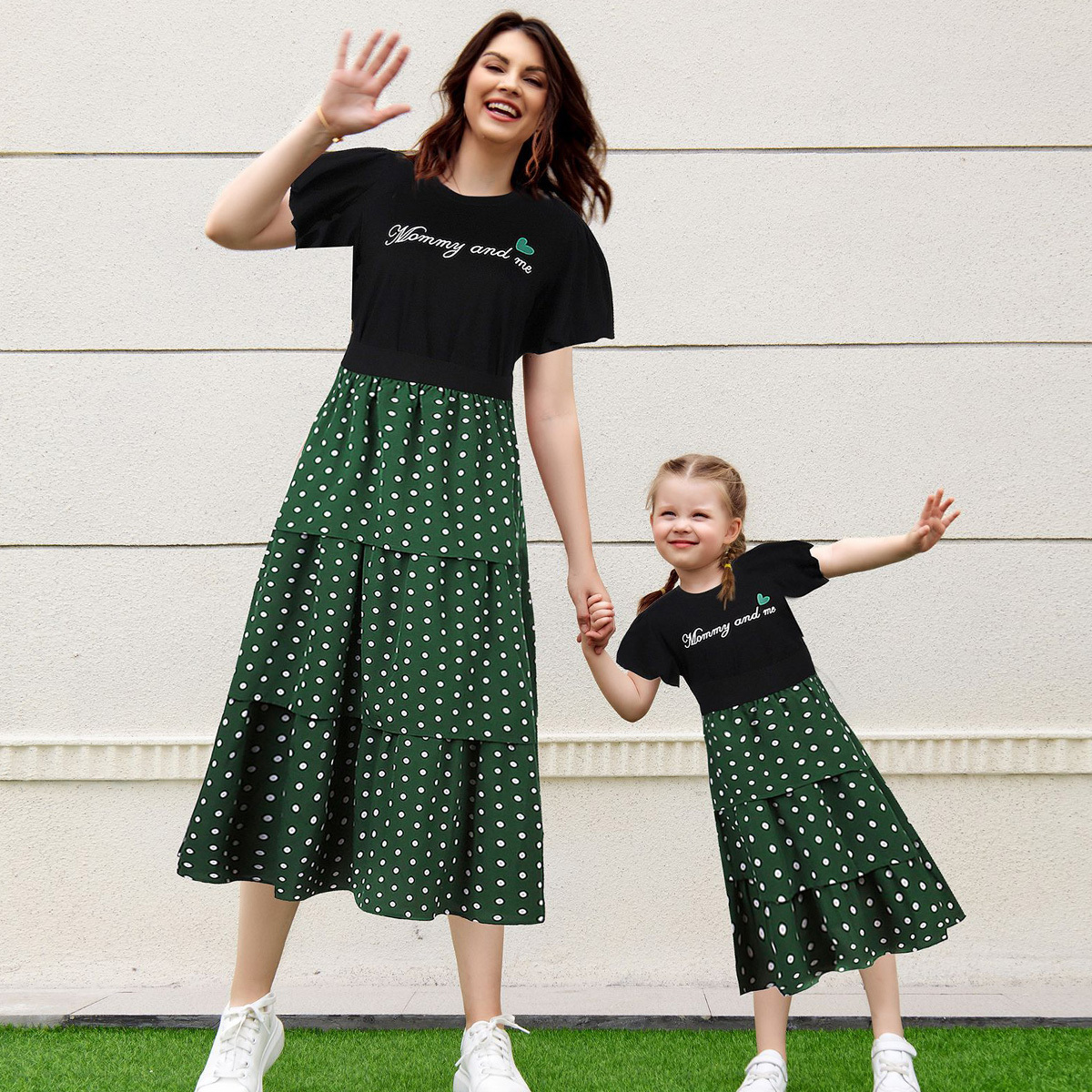 Sweet Letter Print T-shirt & Wave Point Print Skirt Sets for Mom and Me Wholesale
