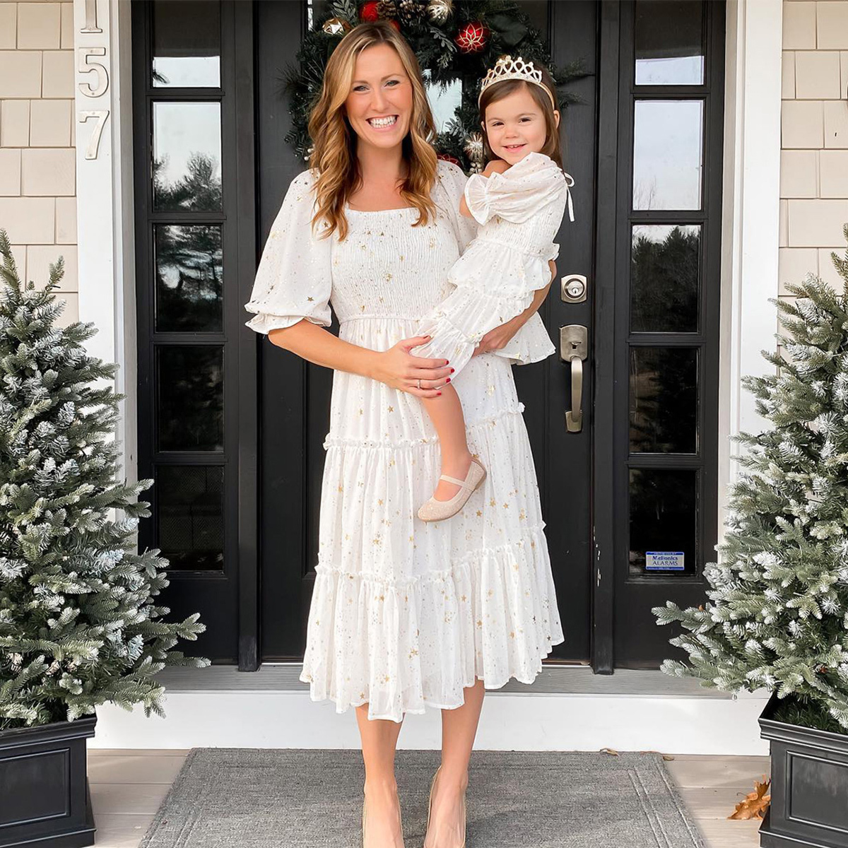 Sweet Star Print Puff Sleeve Dress for Mom and Me Wholesale