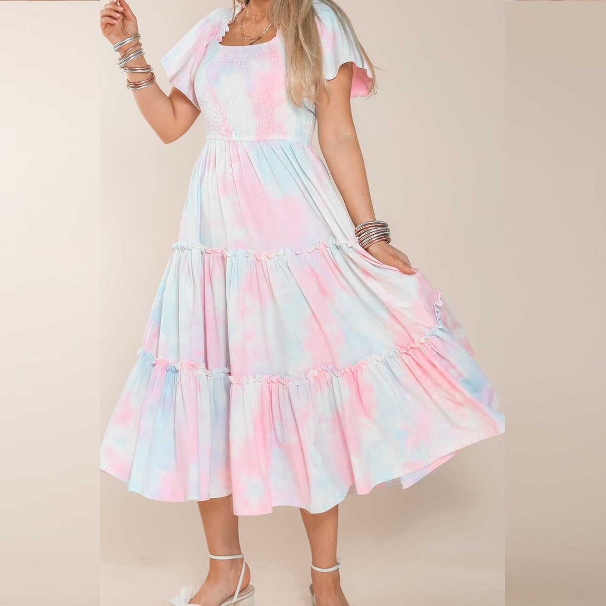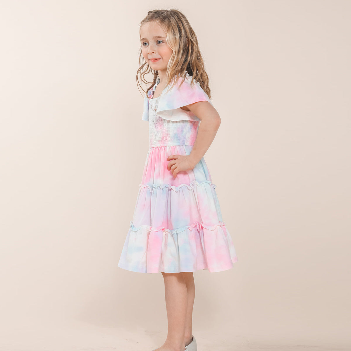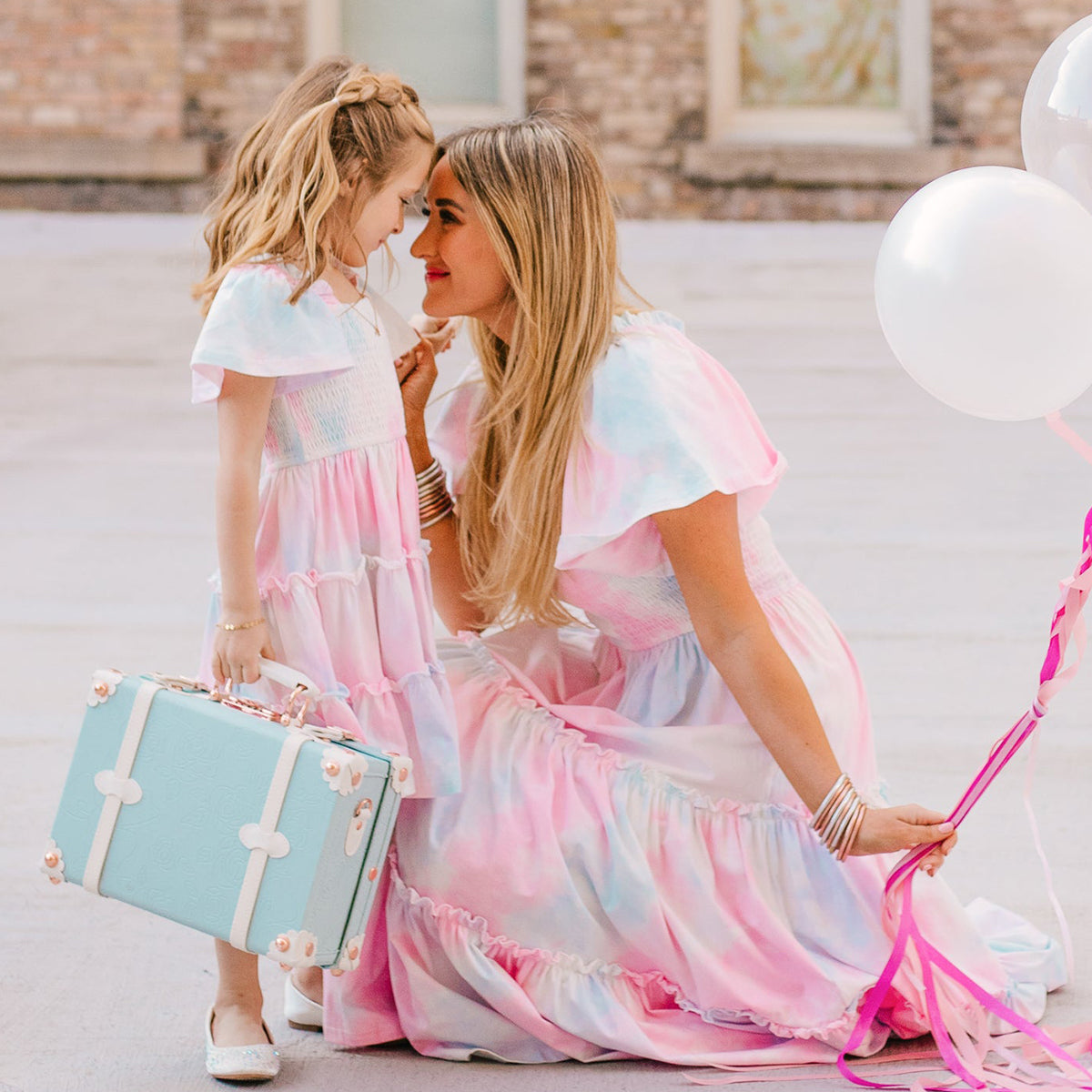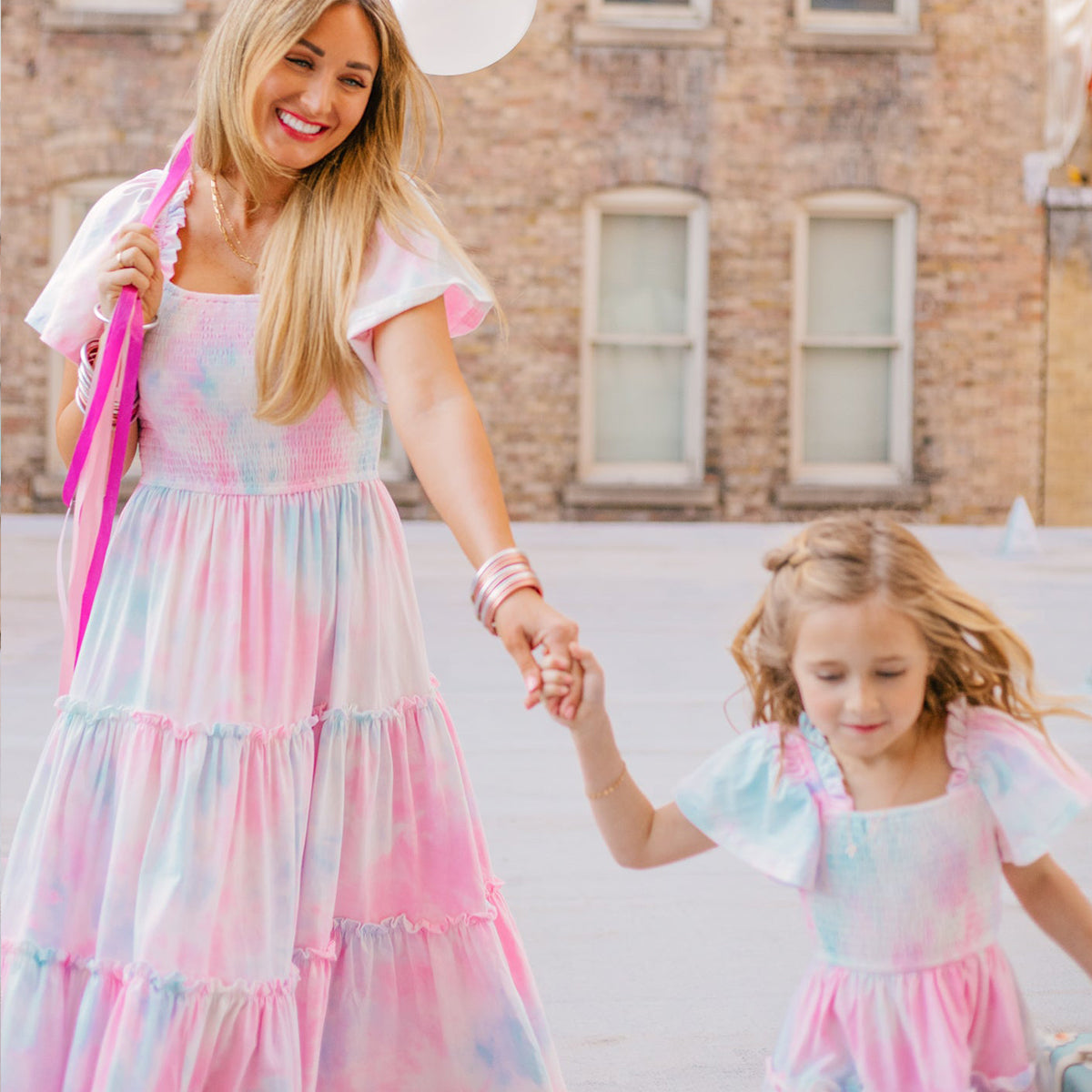 Sweet Tie-dye Puff Sleeve Long Dress for Mom and Me Wholesale