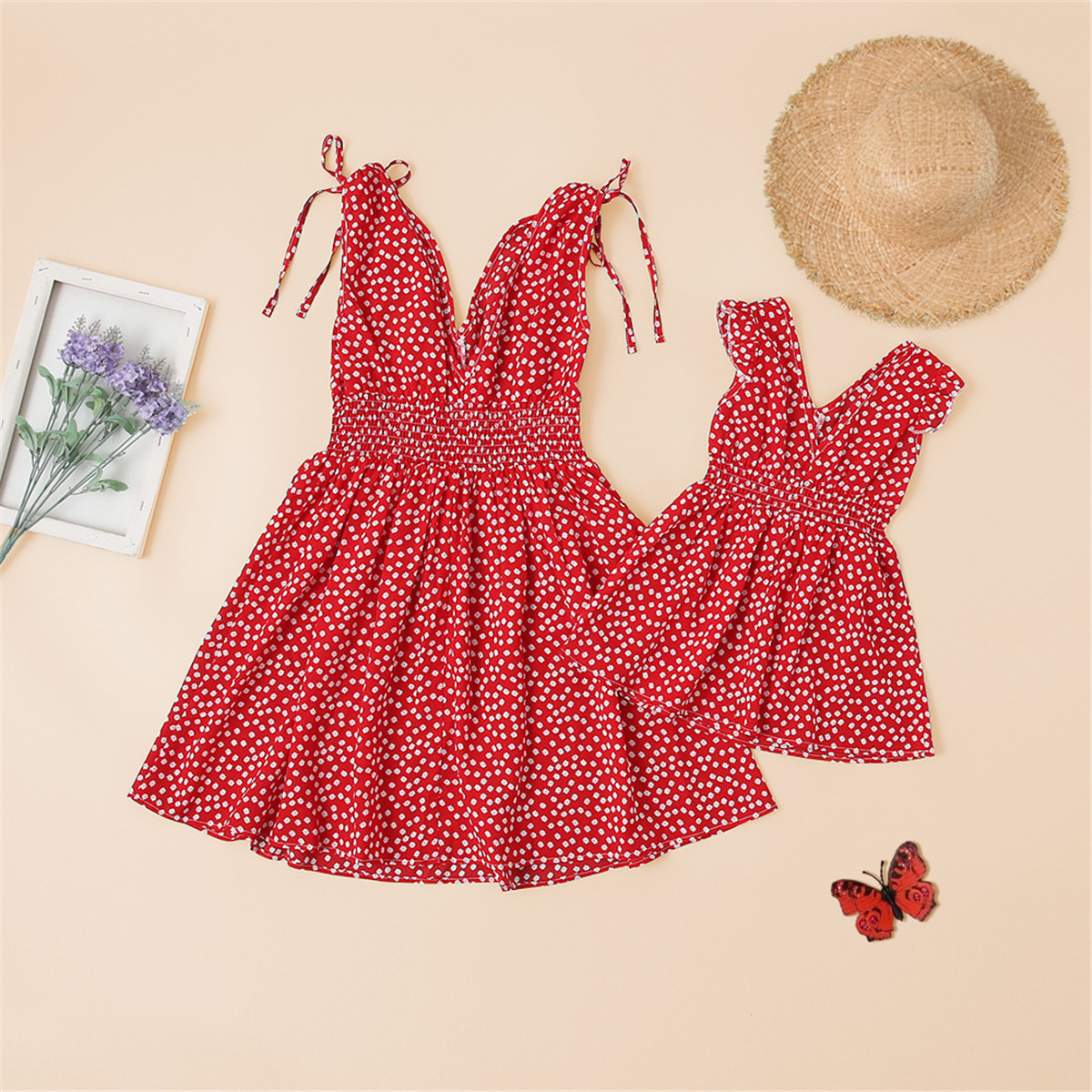 Sweet Wave Point Print Sleeveless Dress for Mom and Me Wholesale