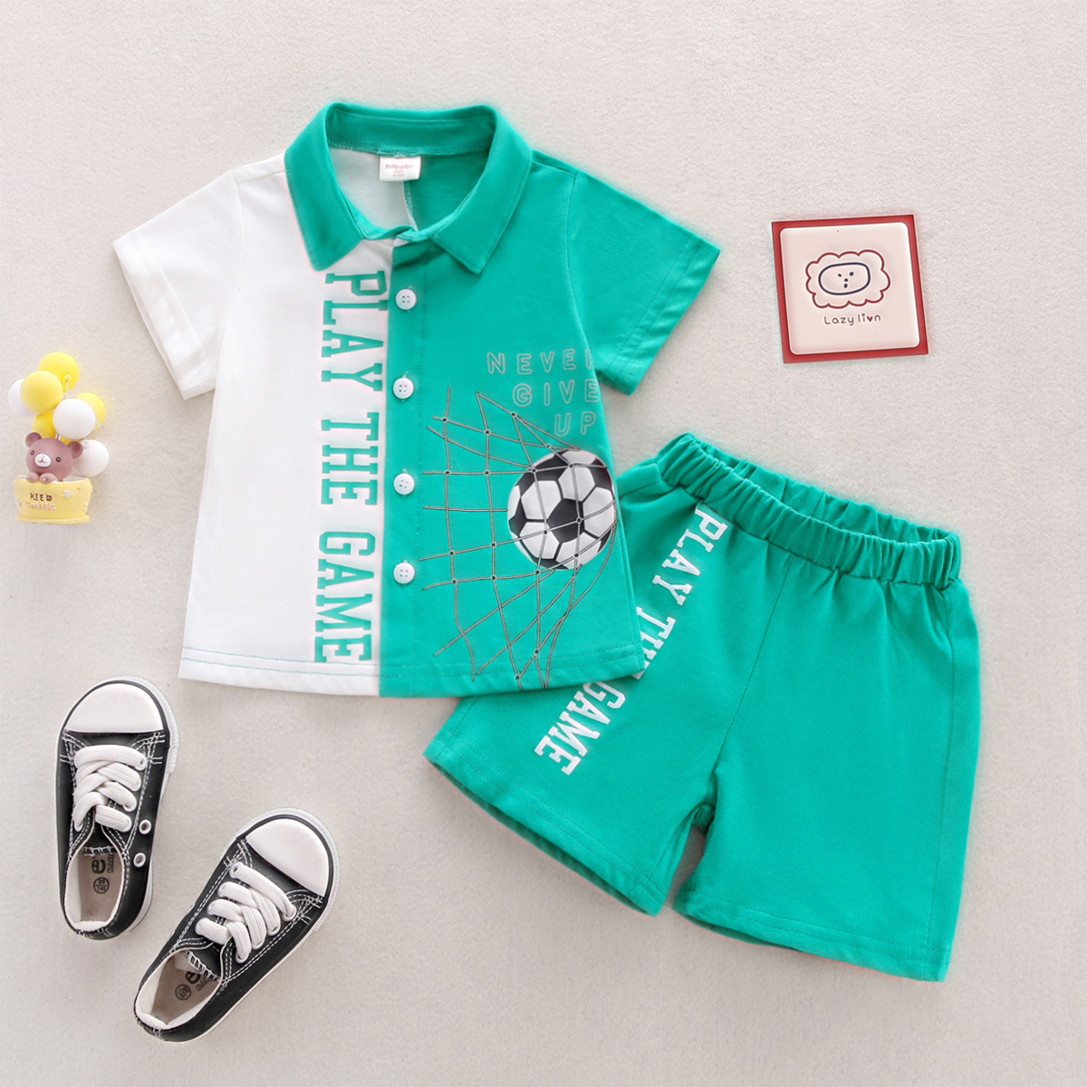 Toddler Boy Football Print Splicing Top & Pants Wholesale