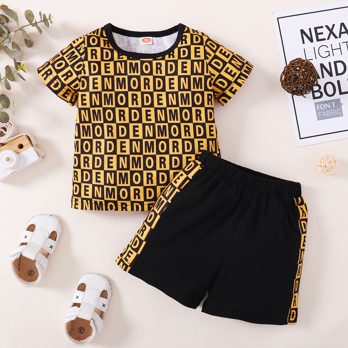 Toddler Boy Letter Plaid Color-block Top & Shorts Wholesale