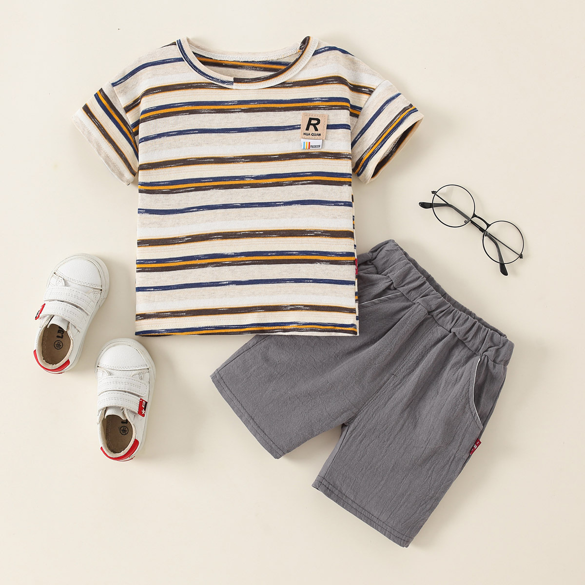 Toddler Boy Stripes Color-block Top & Shorts Wholesale