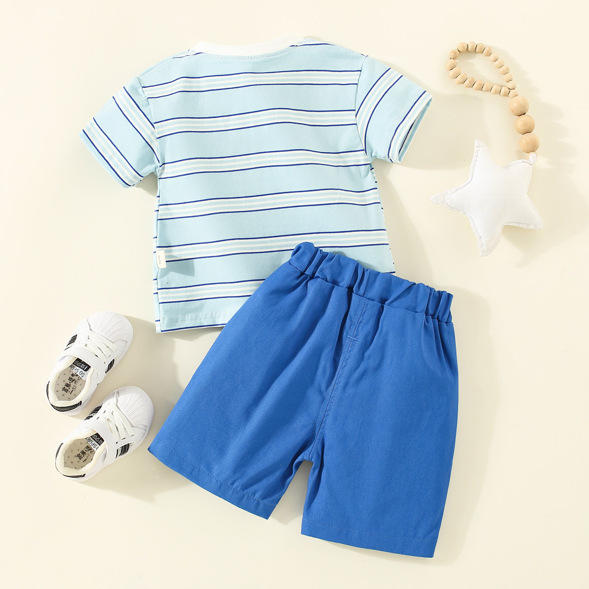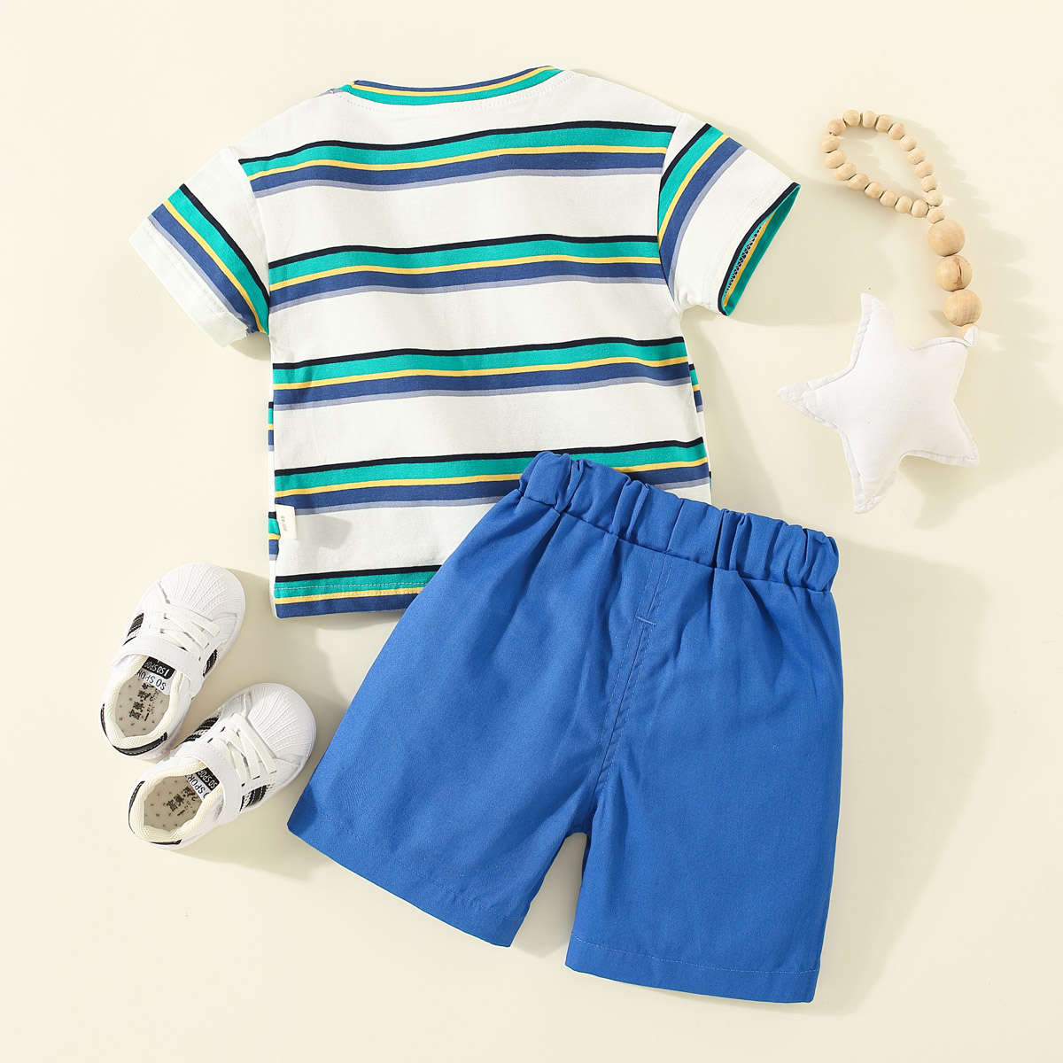 Toddler Boys Stripes Color-block Horizontal Stripes Top & Shorts Wholesale