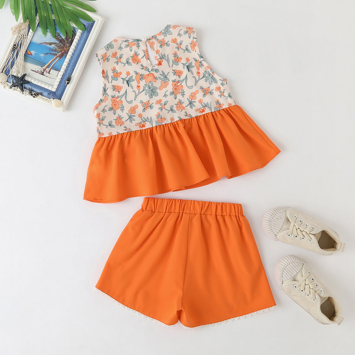 Toddler Girl Bow Knot Decor Floral Top & Shorts Wholesale