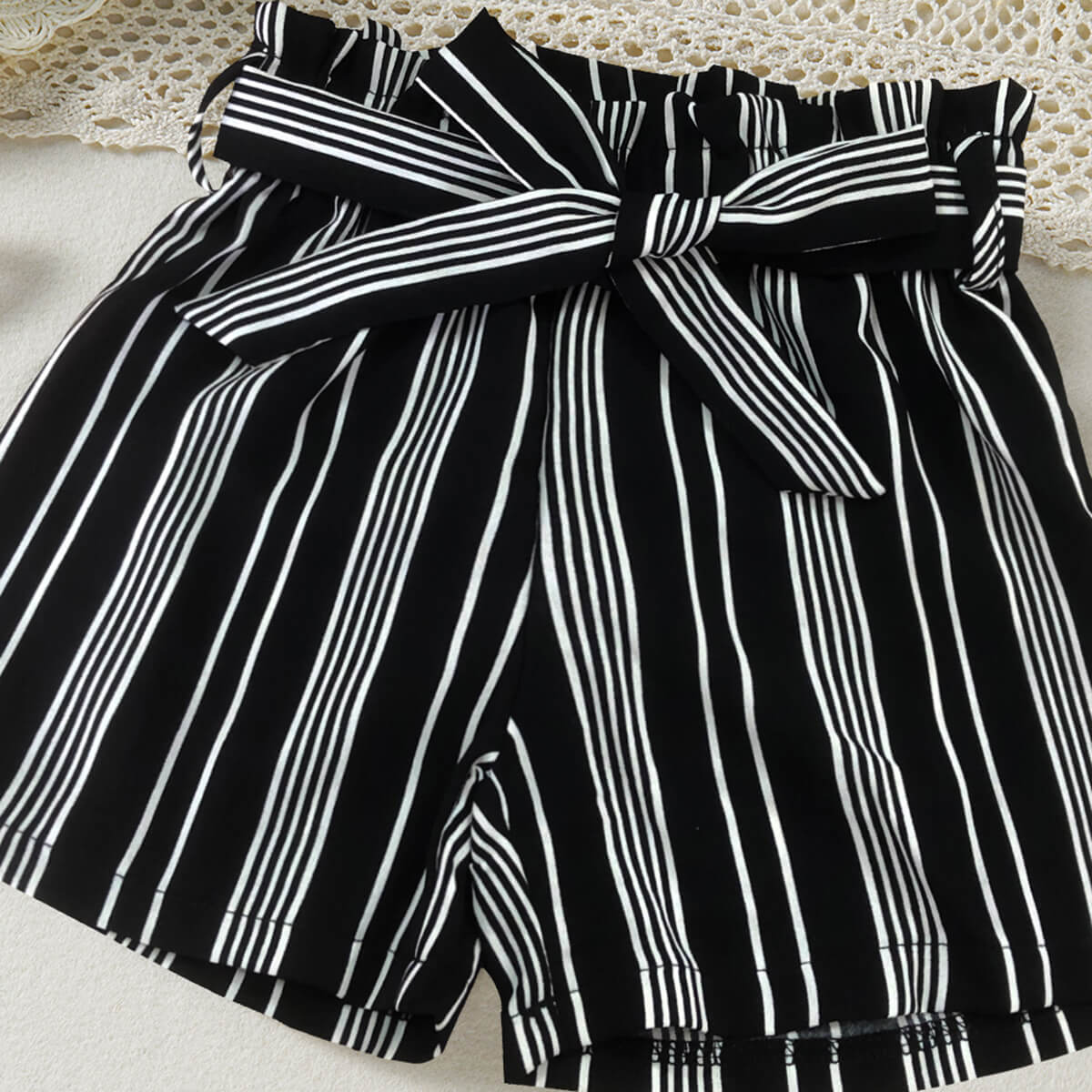 Toddler Girl Casual Eleguard Striped Vest Top & Shorts & Belt Wholesale