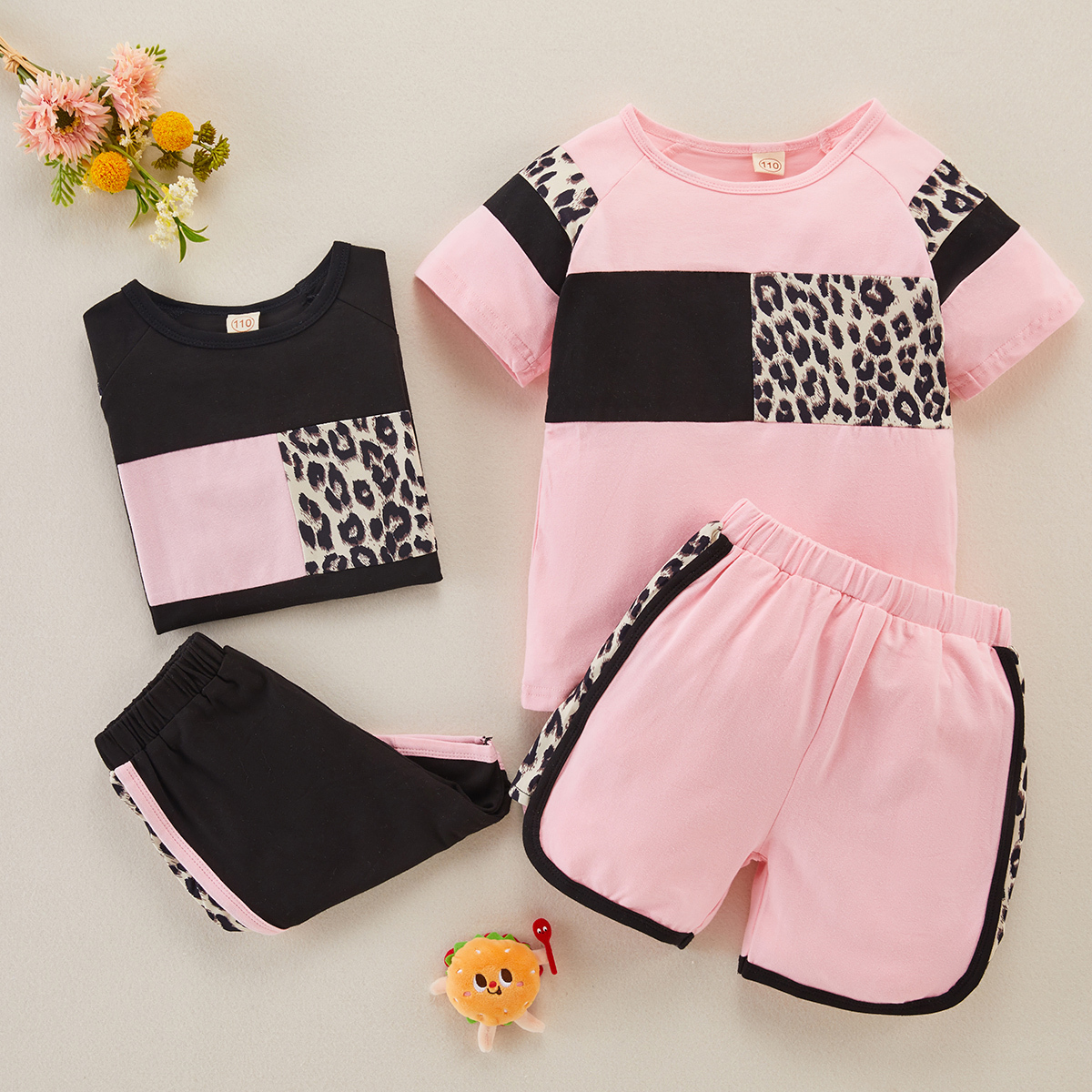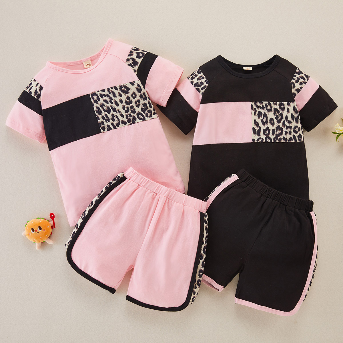 Toddler Girl Casual Fabric Blocking Leopard T-shirt & Shorts Wholesale