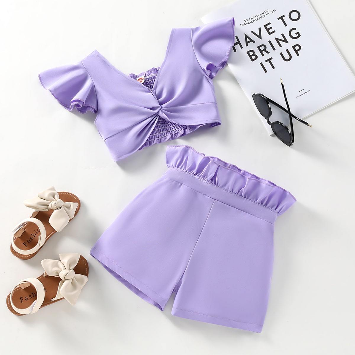 Toddler Girl Casual Solid Color Fly Sleeves Tank Top & Shorts Wholesale