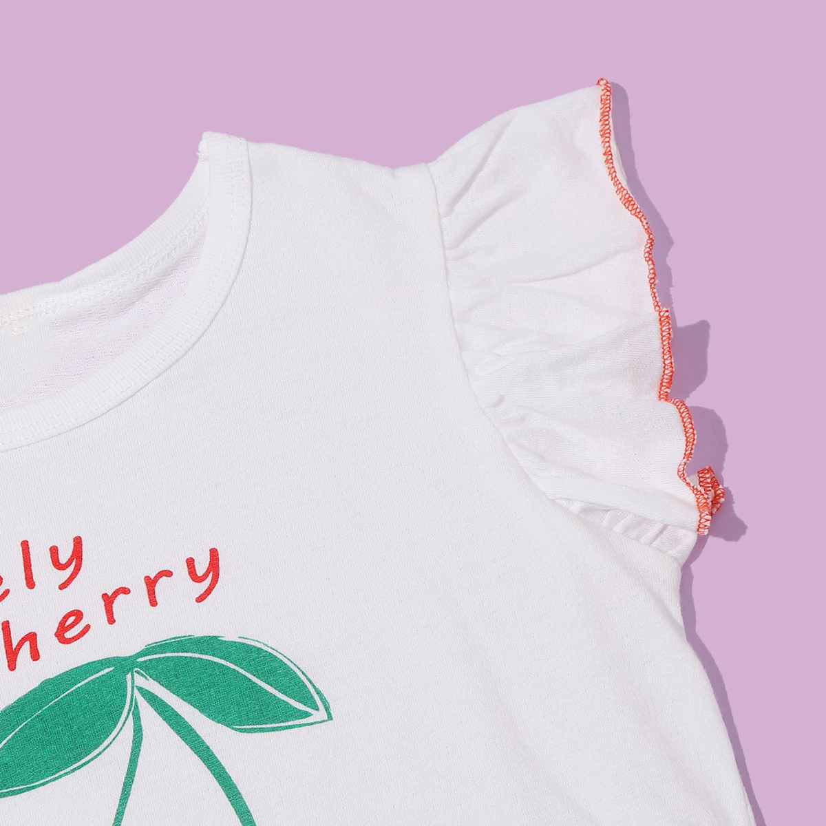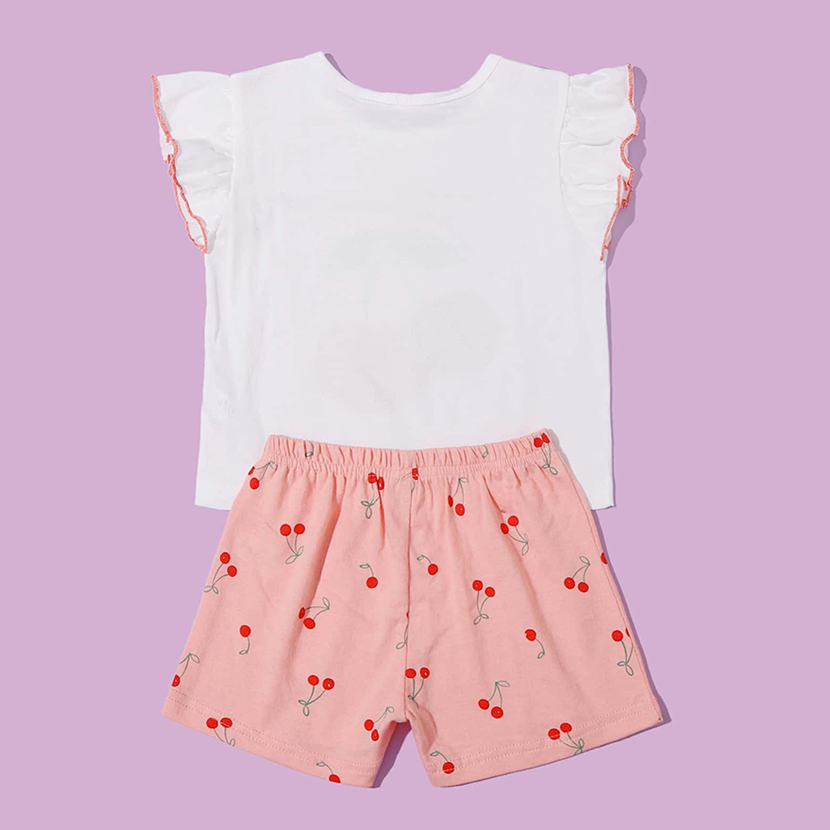 Toddler Girl Cherry Fly Sleeves Pajamas Top & Shorts Wholesale