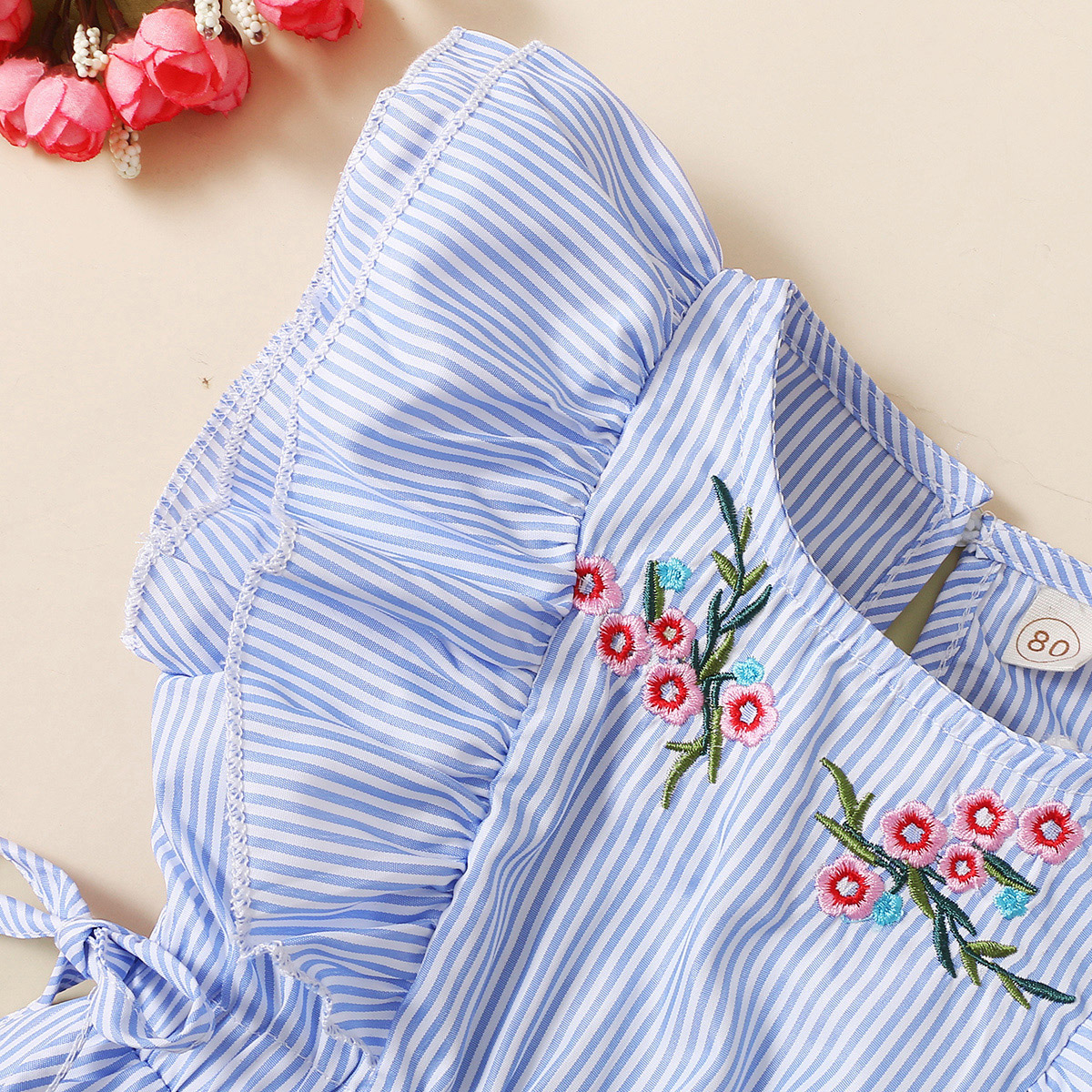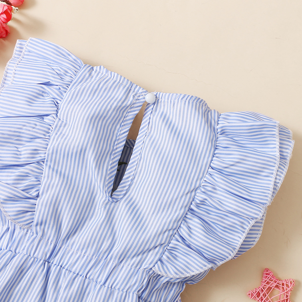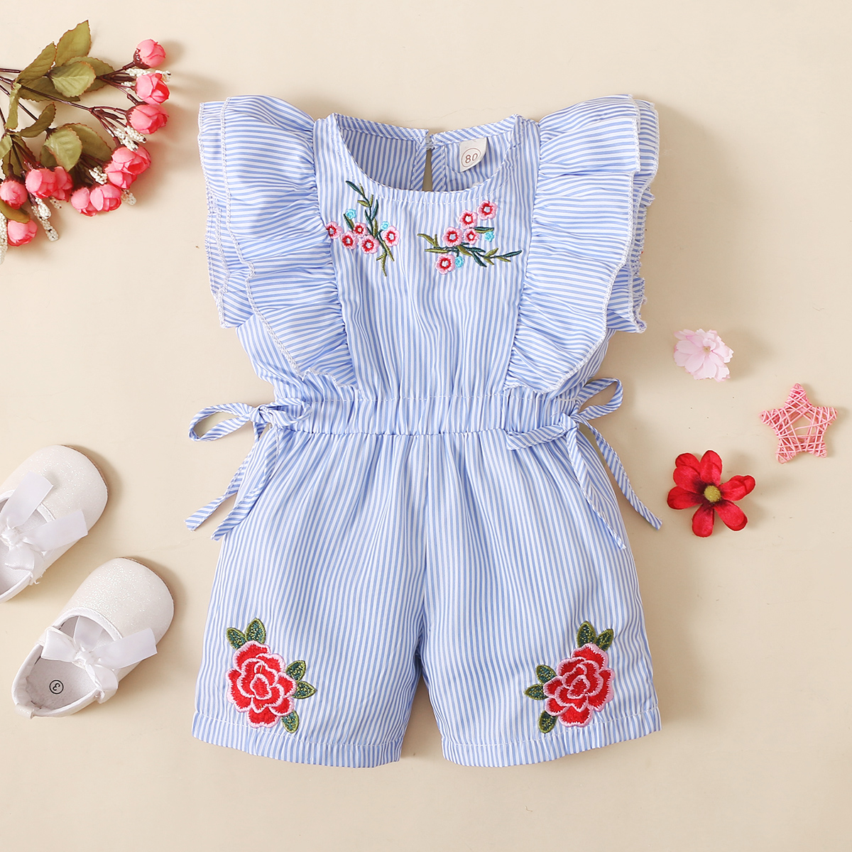 Toddler Girl Cotton Spandex Casual Floral Stripes Printing Romper Wholesale