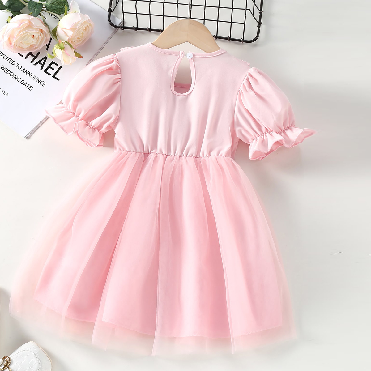 Toddler Girl Cute Sweet Floral Tulle Press Dress Wholesale