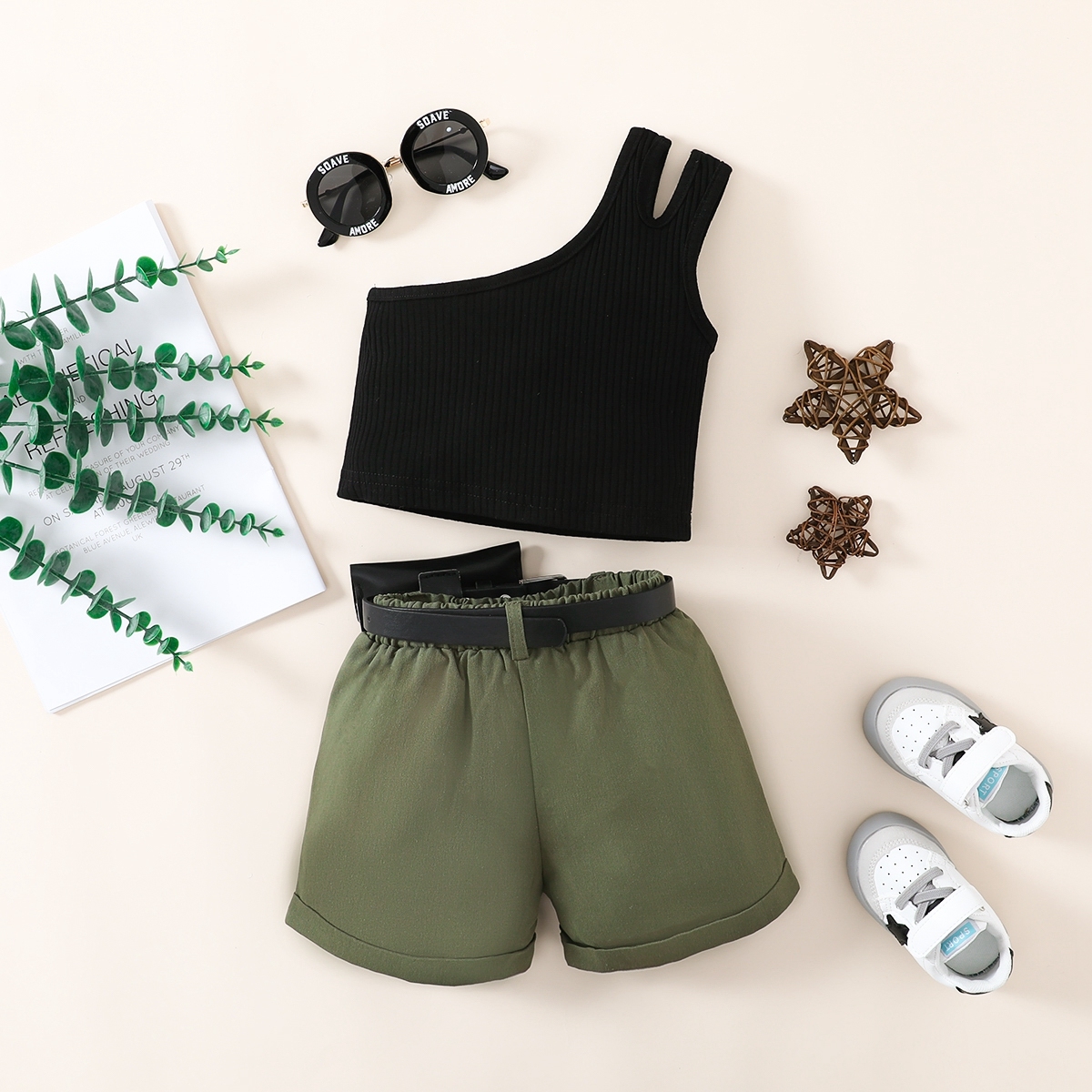 Toddler Girl Fashion Solid Color Asymmetric Tank Top & Shorts & Belt Wholesale