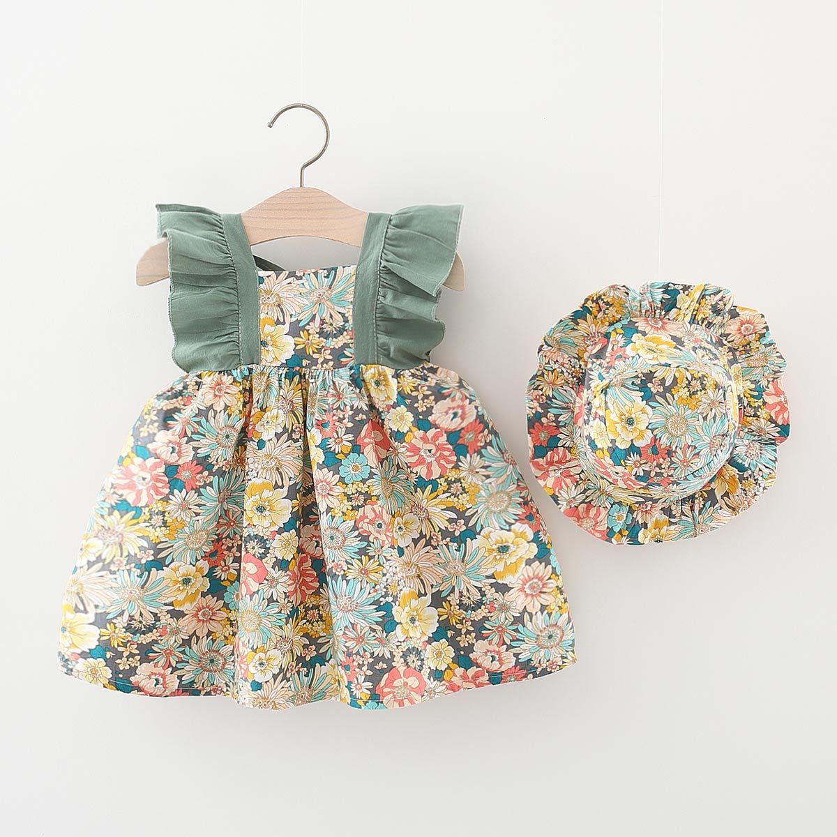 Toddler Girl Floral Pattern Dress & Hat Wholesale