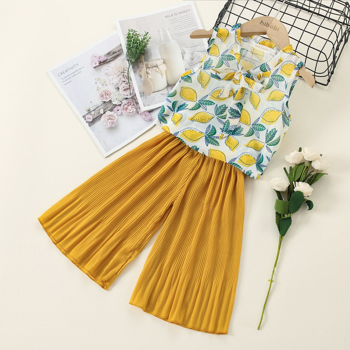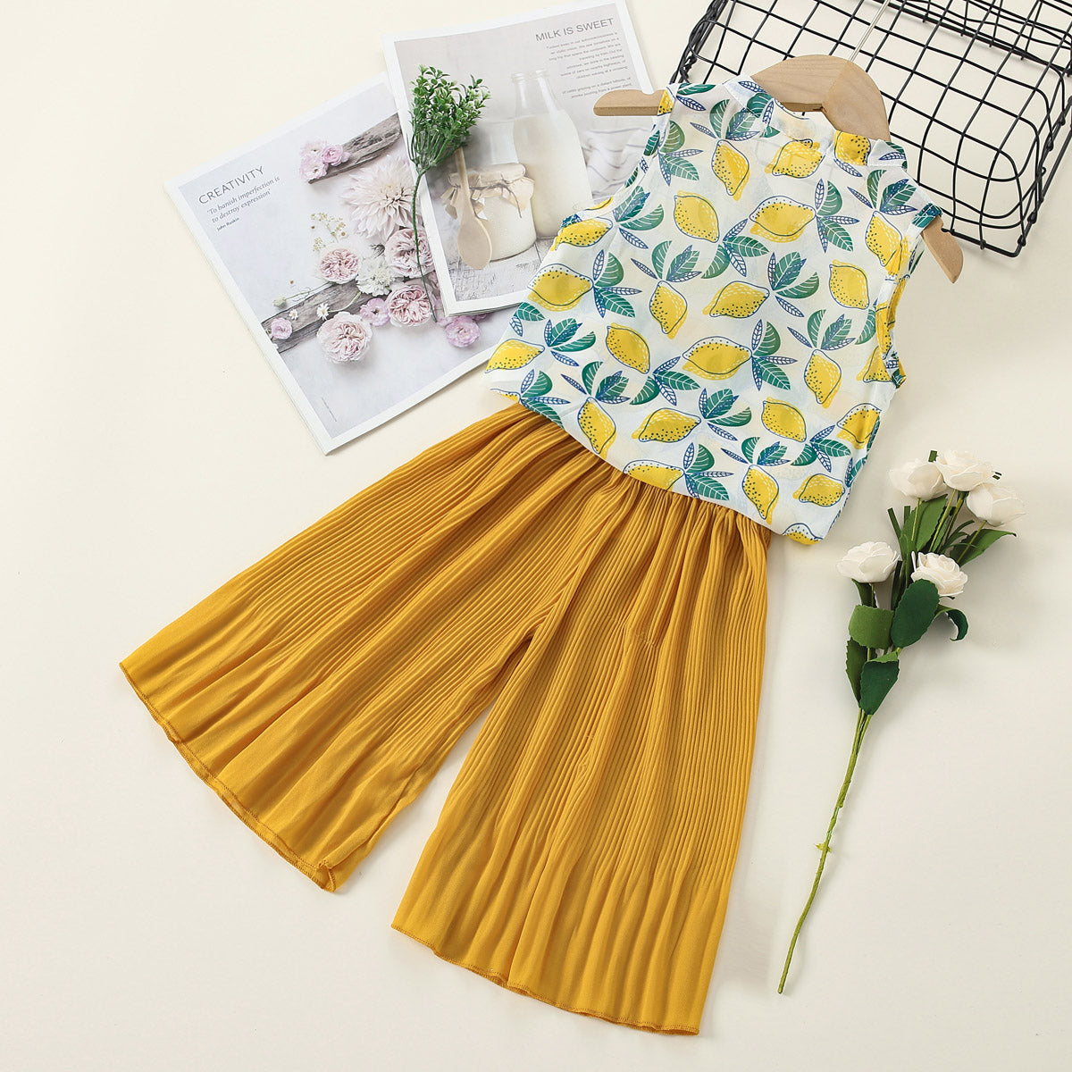 Toddler Girl Lemon Print Wrinkled Pants T-shirt & Pants Wholesale