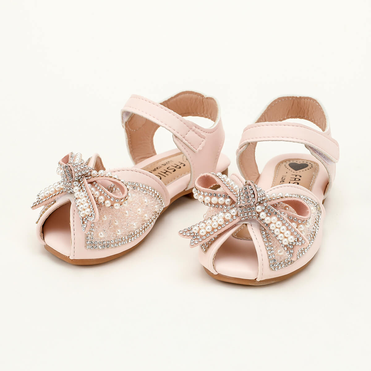 Toddler Girl Pearl Rhinestone Bow Sandals Wholesale