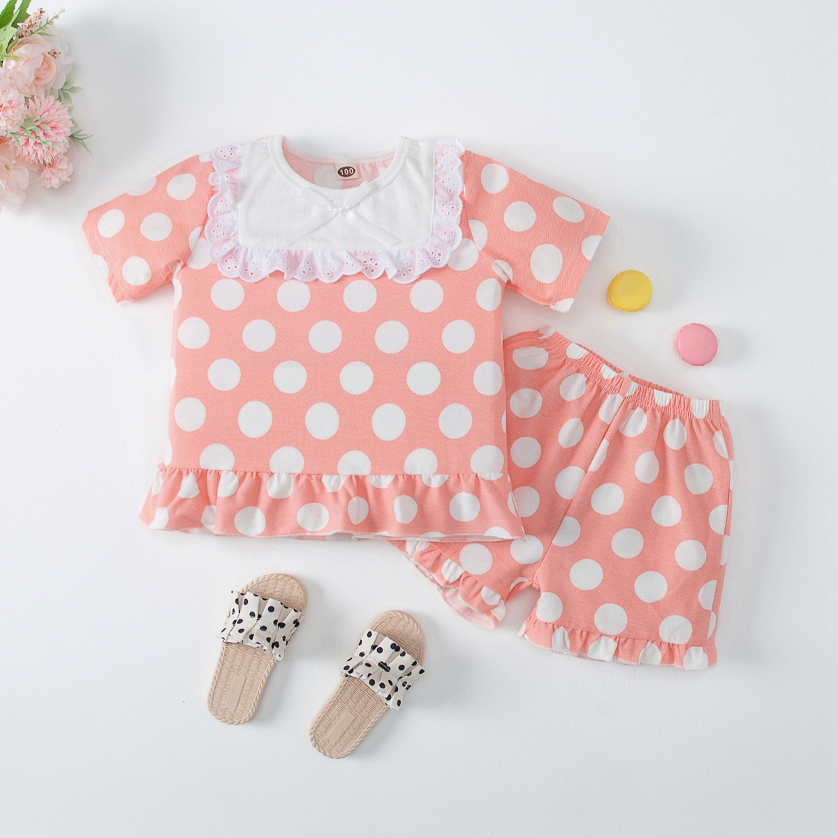 Toddler Girl Polka Color-block Pajamas Top & Short Wholesale