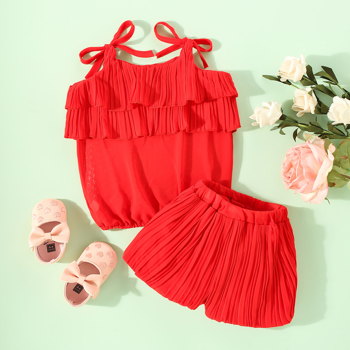 Toddler girl Solid Chiffon Top & Shorts Wholesale