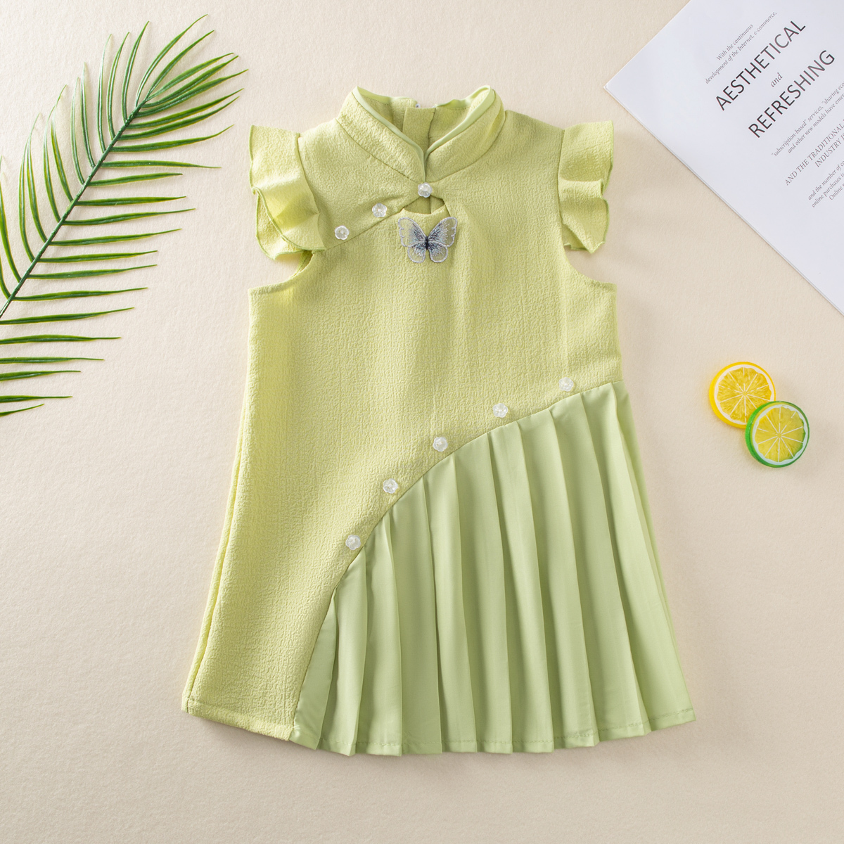 Toddler Girl Sweet Butterfly Stand Up Collar Dress Wholesale