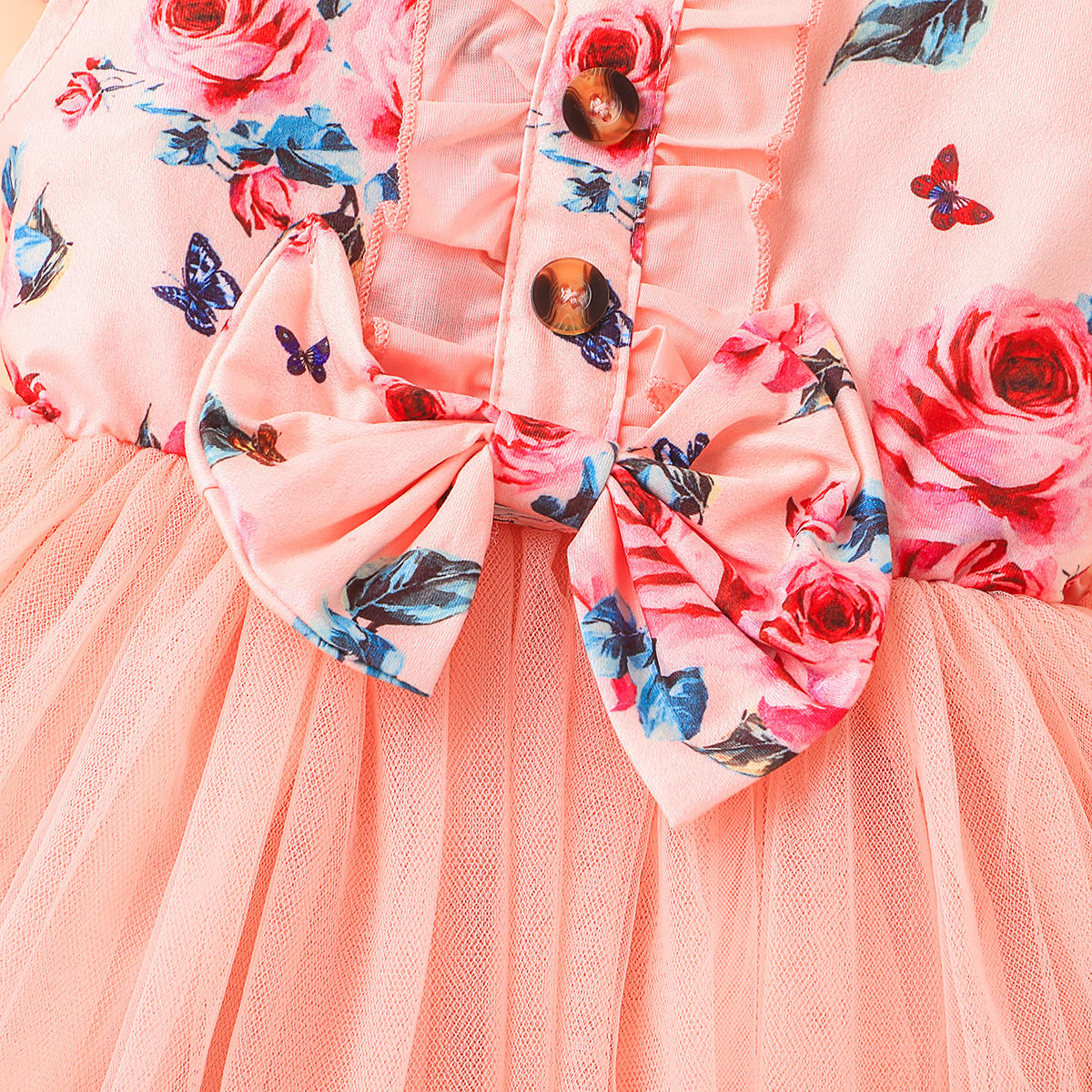Toddler Girl Sweet Floral Bow Knot Decor Dress Wholesale