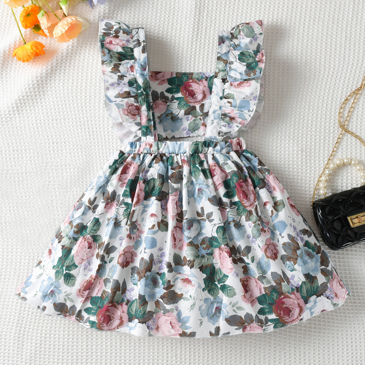 Toddler Girl Sweet Floral Ruffle A Line Dress Wholesale