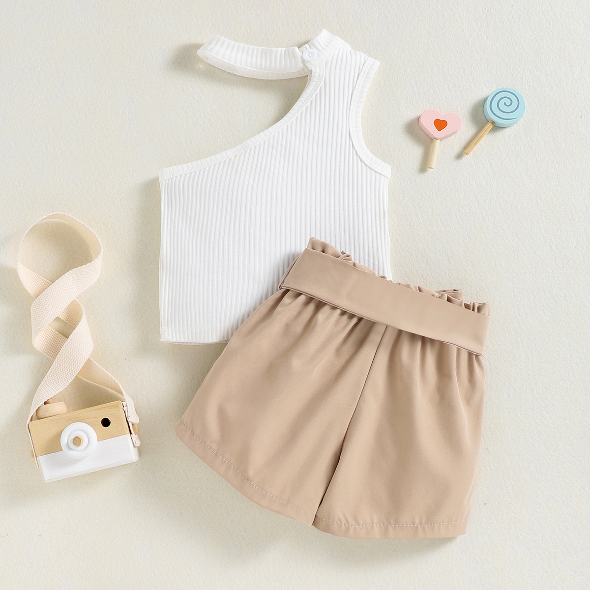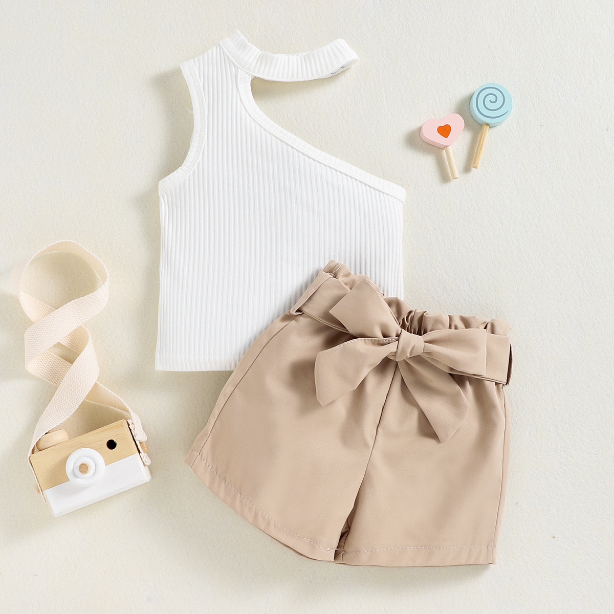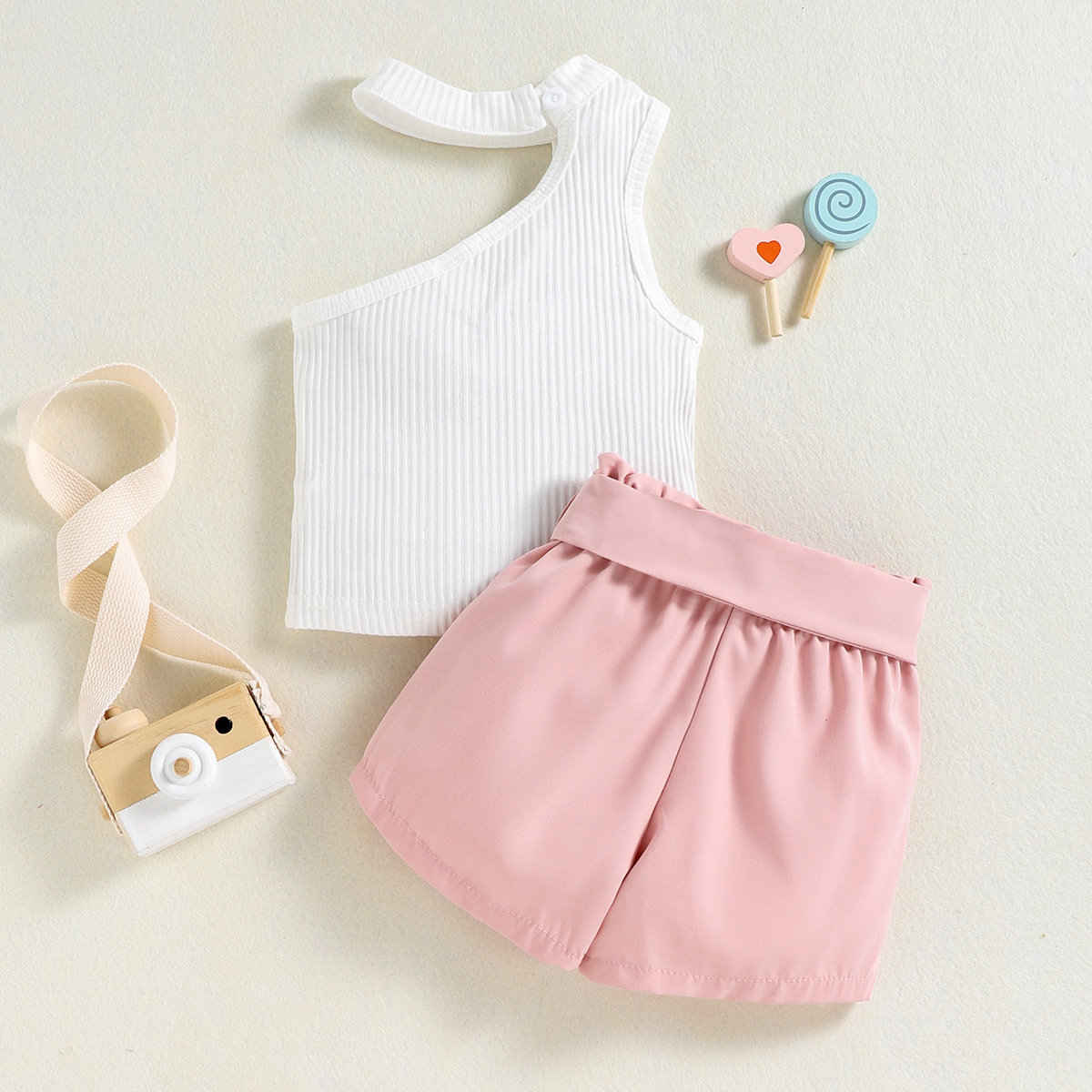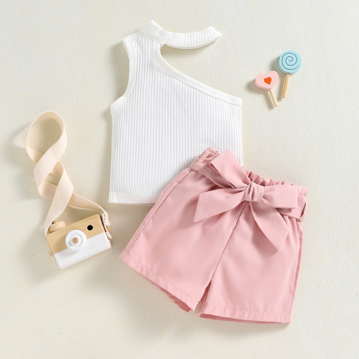 Toddler Girl Sweet Halter Neck Hollow Out Top & Shorts Wholesale