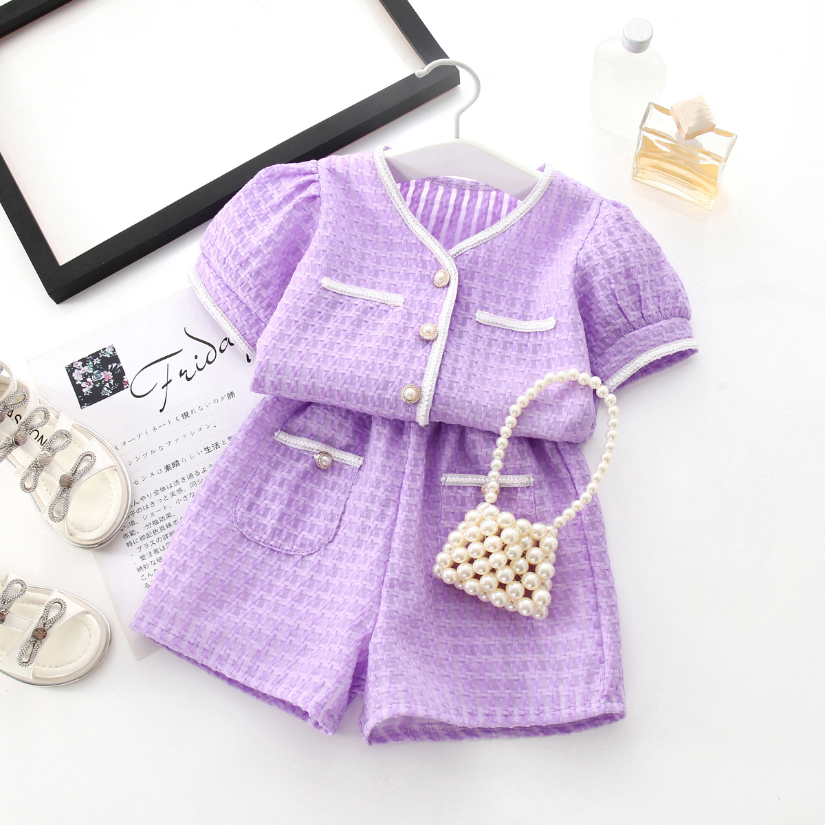 Toddler Girl V-neck Sweet Elegant Daily Plaid Top & Shorts Wholesale
