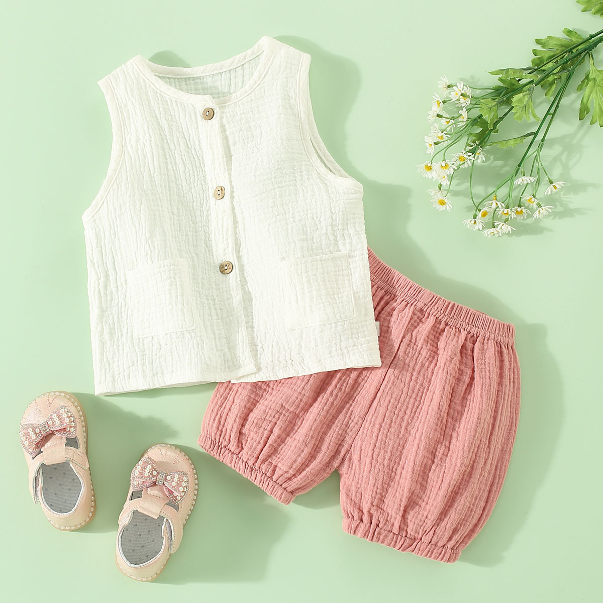 Toddler Girls Cotton Solid Top & Shorts Wholesale