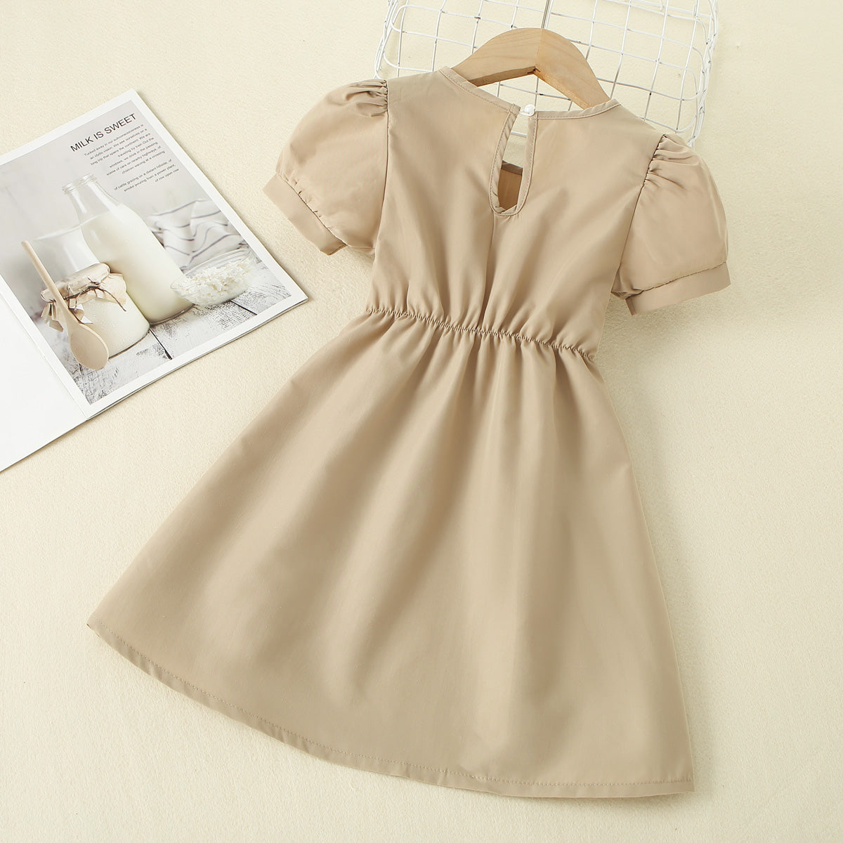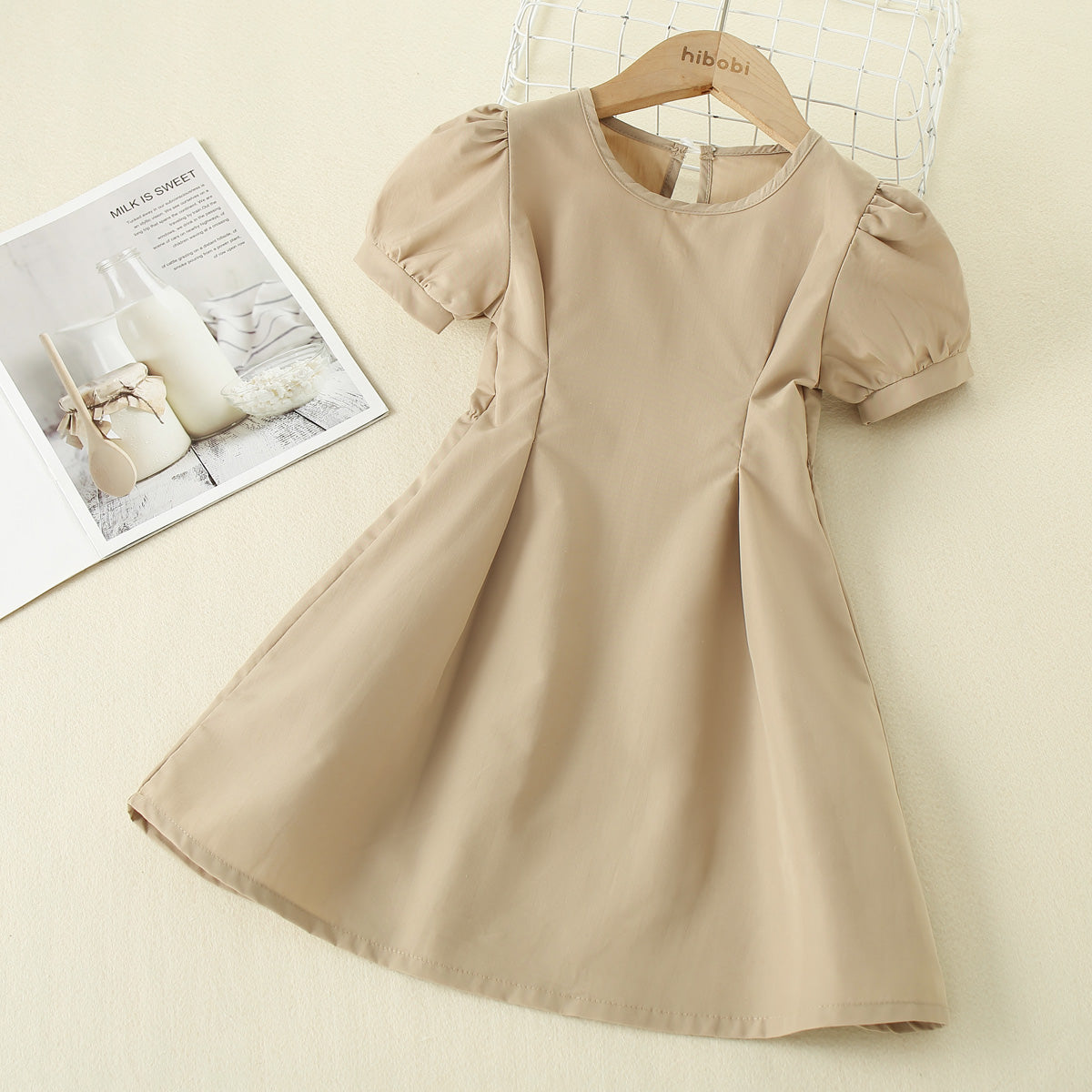 Toddler Girls Cute Solid Puff Sleeve Top Dress Wholesale