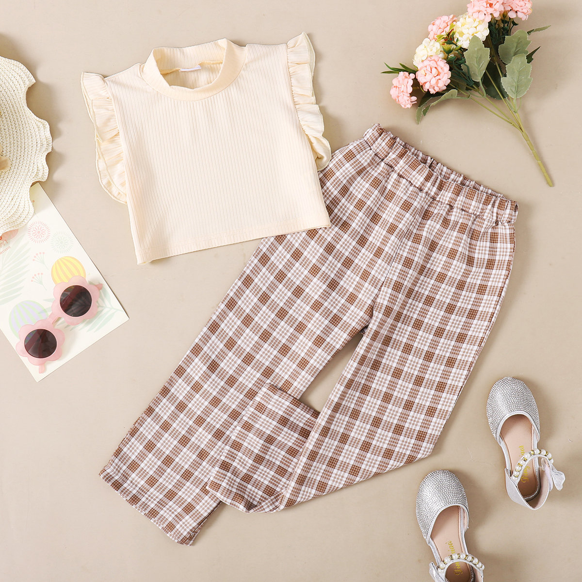 Toddler Girls Half A Turtleneck Ruffled Sleeve Retro Top & Pants Wholesale